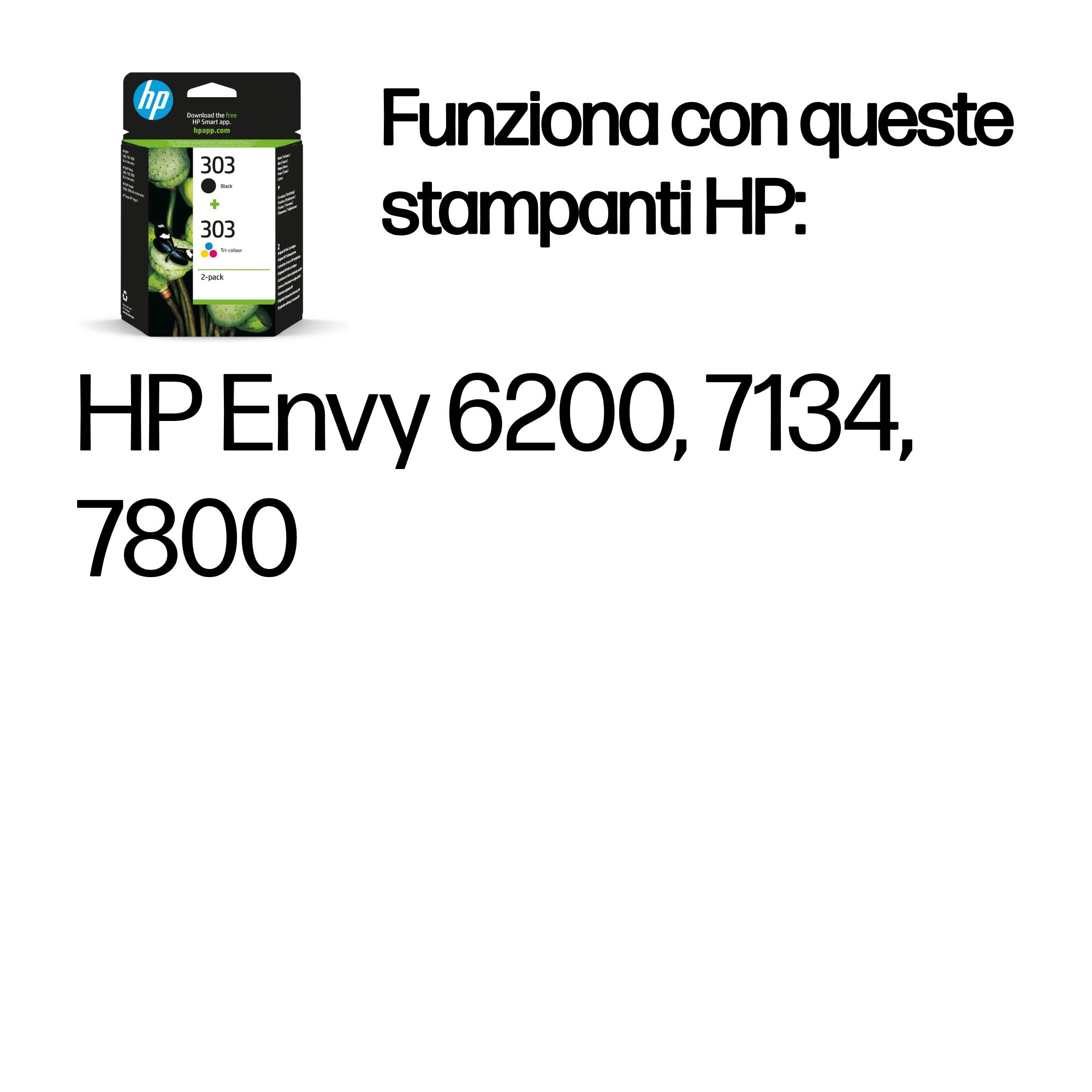 HP Confezione da 2 cartucce di inchiostro nero/in tricromia originali 303, Resa standard, Nero, Ciano, Magenta, Giallo, Inchiostro a base di pigmento, Inchiostro colorato, 4 ml, 4 ml