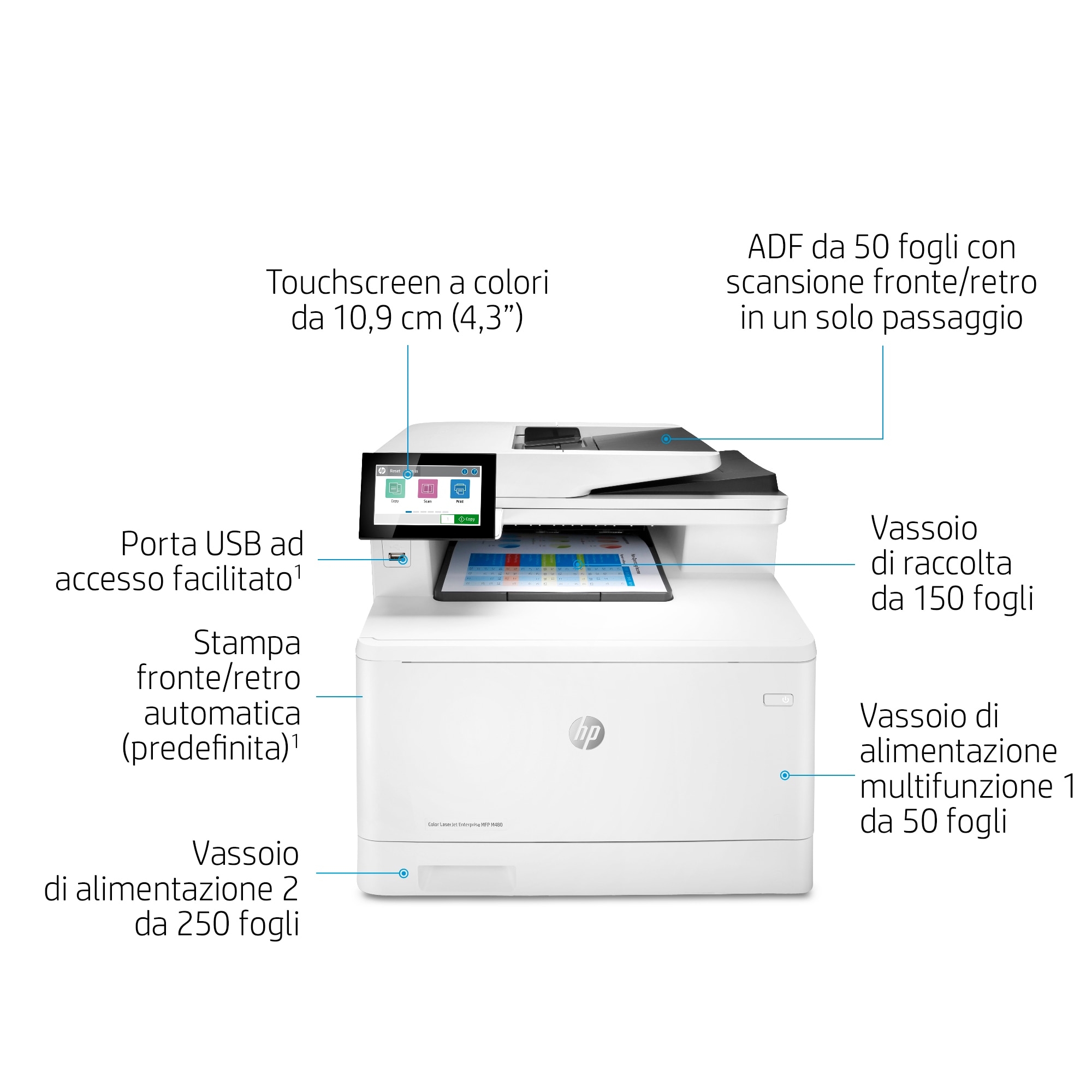 HP Color LaserJet Enterprise Stampante multifunzione Enterprise Color LaserJet M480f, Laser, Stampa a colori, 600 x 600 DPI, A4, Stampa diretta, Bianco, Nero