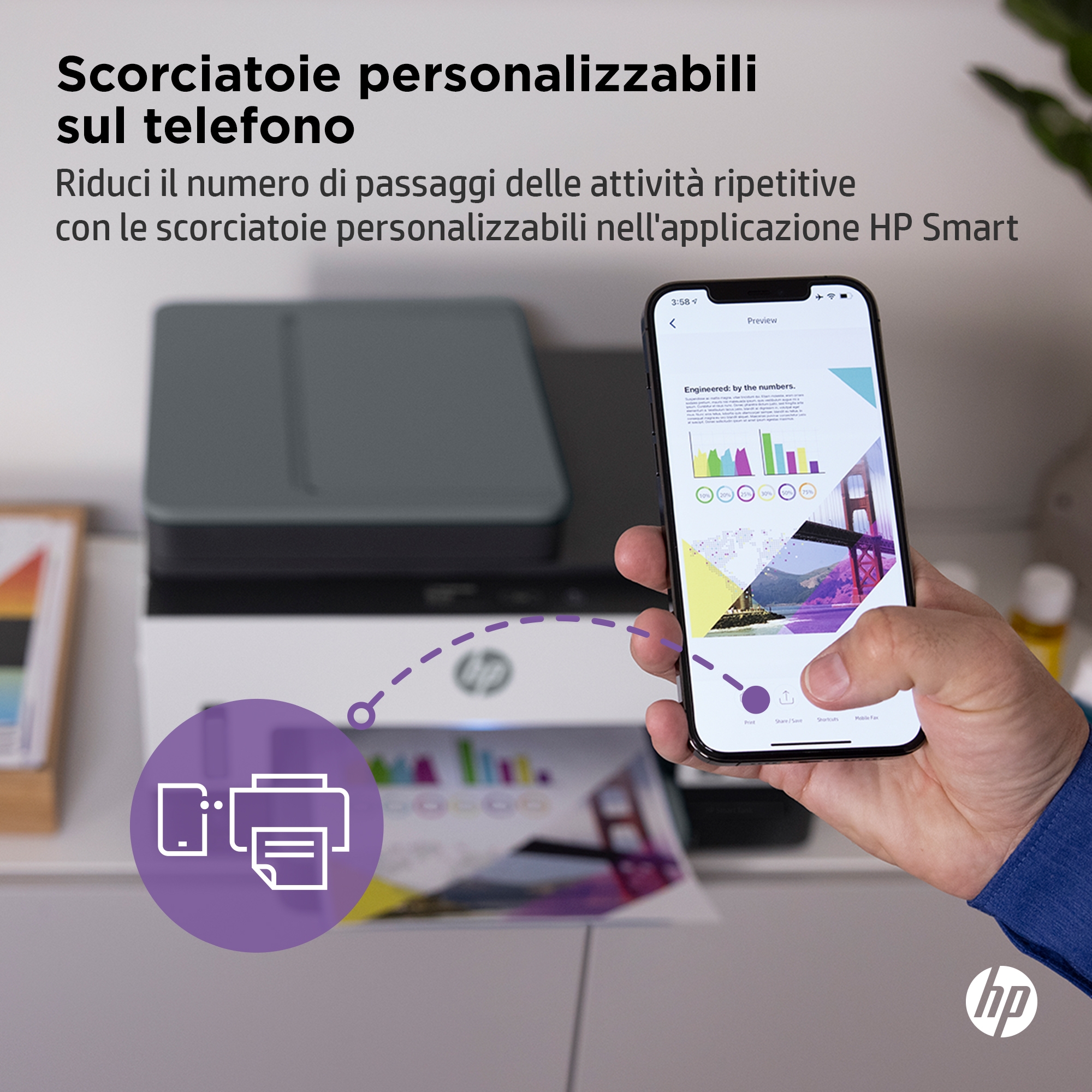 Produttività straordinaria. Grande risparmio. Migliora la produttività grazie a una stampante senza cartucce, che ti offre una moderna interfaccia touch e unesperienza di stampa superiore. In più, con lInchiostro Originale HP incluso nella confezione, stampi fino a tre anni di documenti di qualità eccezionale e a un costo contenuto.<sup>[1]</sup>.