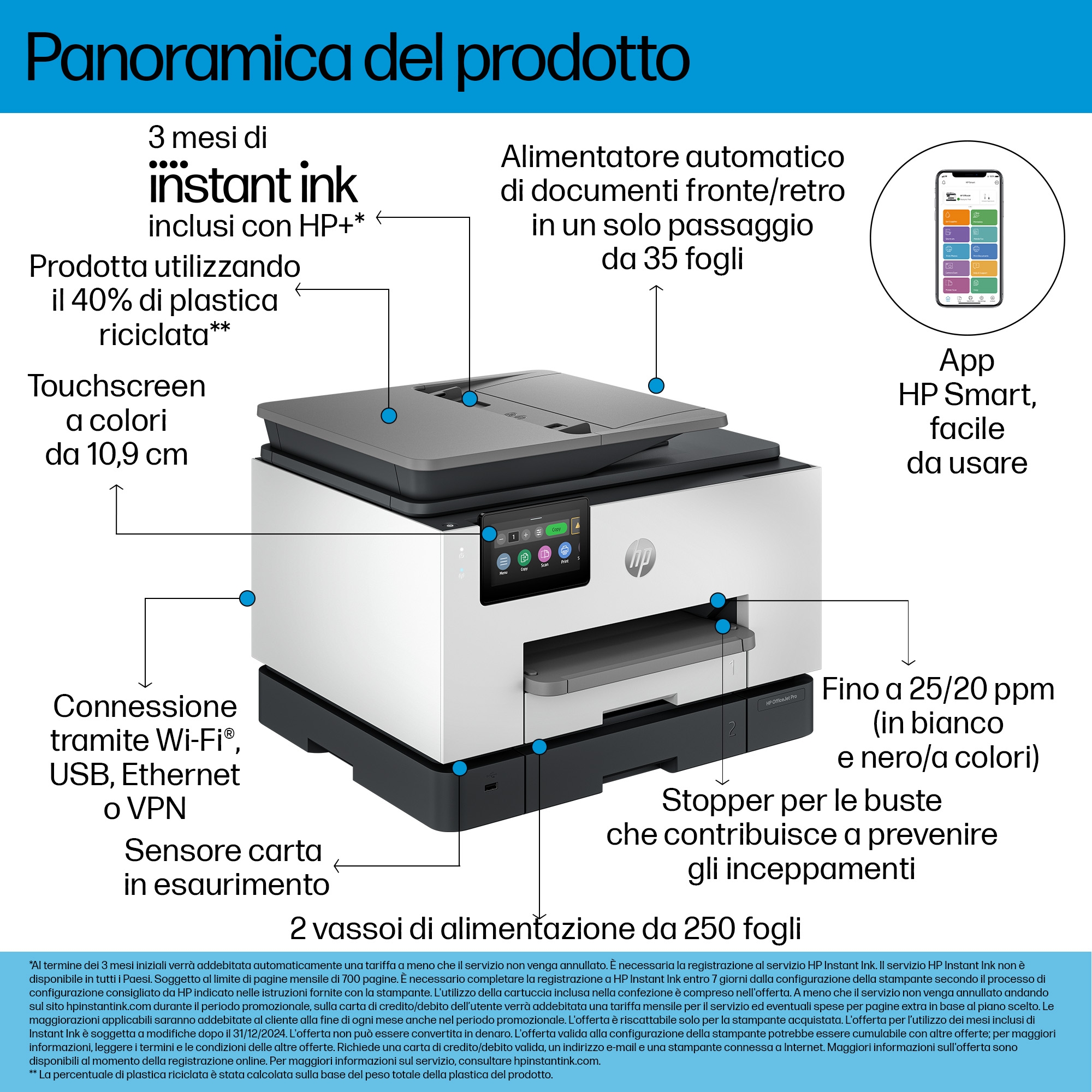HP OfficeJet Pro 9125e Wireless All-in-One Colore Stampante, Instant Ink; Stampa fronte/retro, Getto termico d'inchiostro, Stampa a colori, 4800 x 1200 DPI, A4, Stampa diretta, Grigio6 pz al log. est. (3gg lav.)