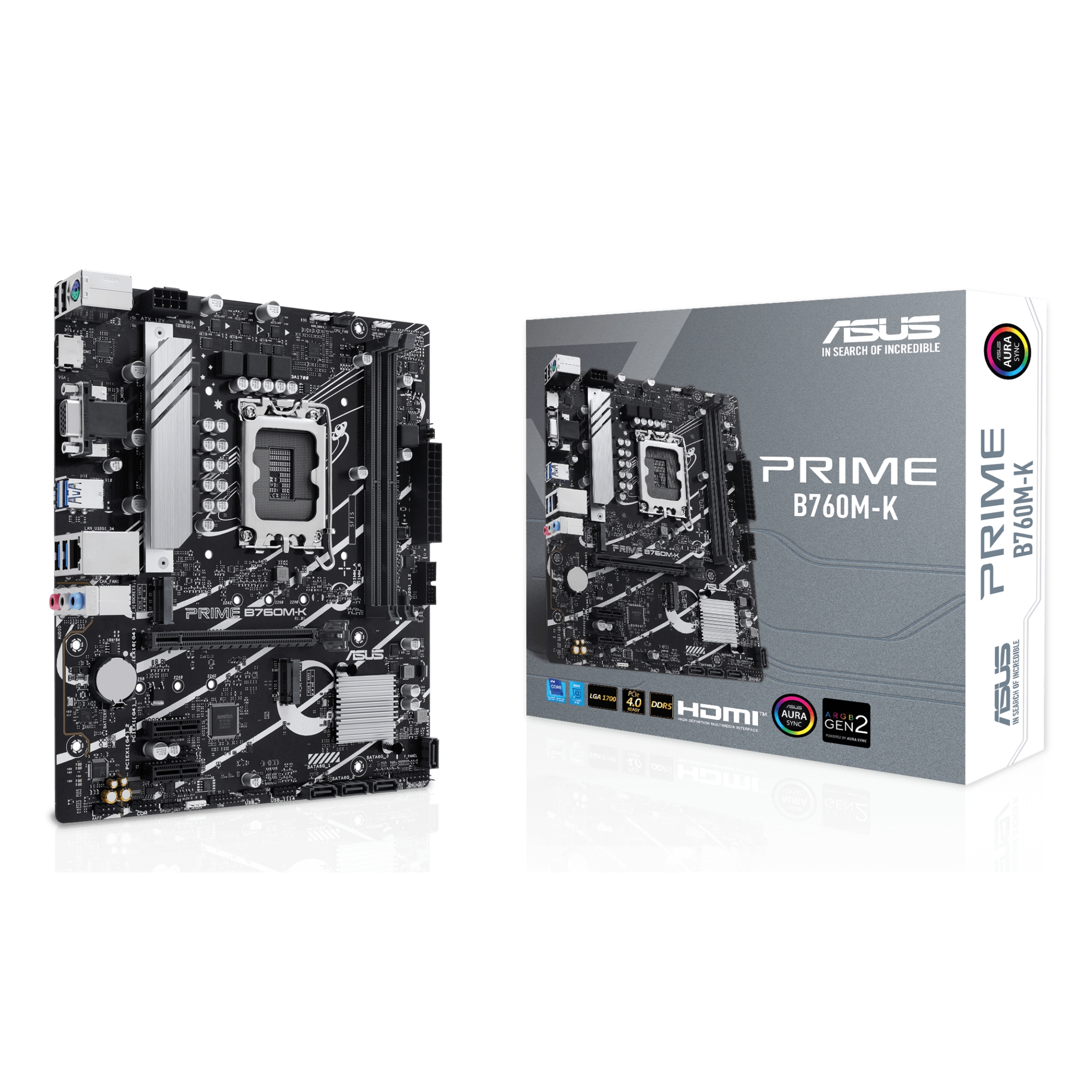 ASUS PRIME B760M-K, Intel, LGA 1700, Intel® Celeron® , Intel® Pentium® Gold, Intel® Core™ i3, Intel® Core™ i5, Intel® Core™ ..., LGA 1700, DDR5-SDRAM, 96 GB