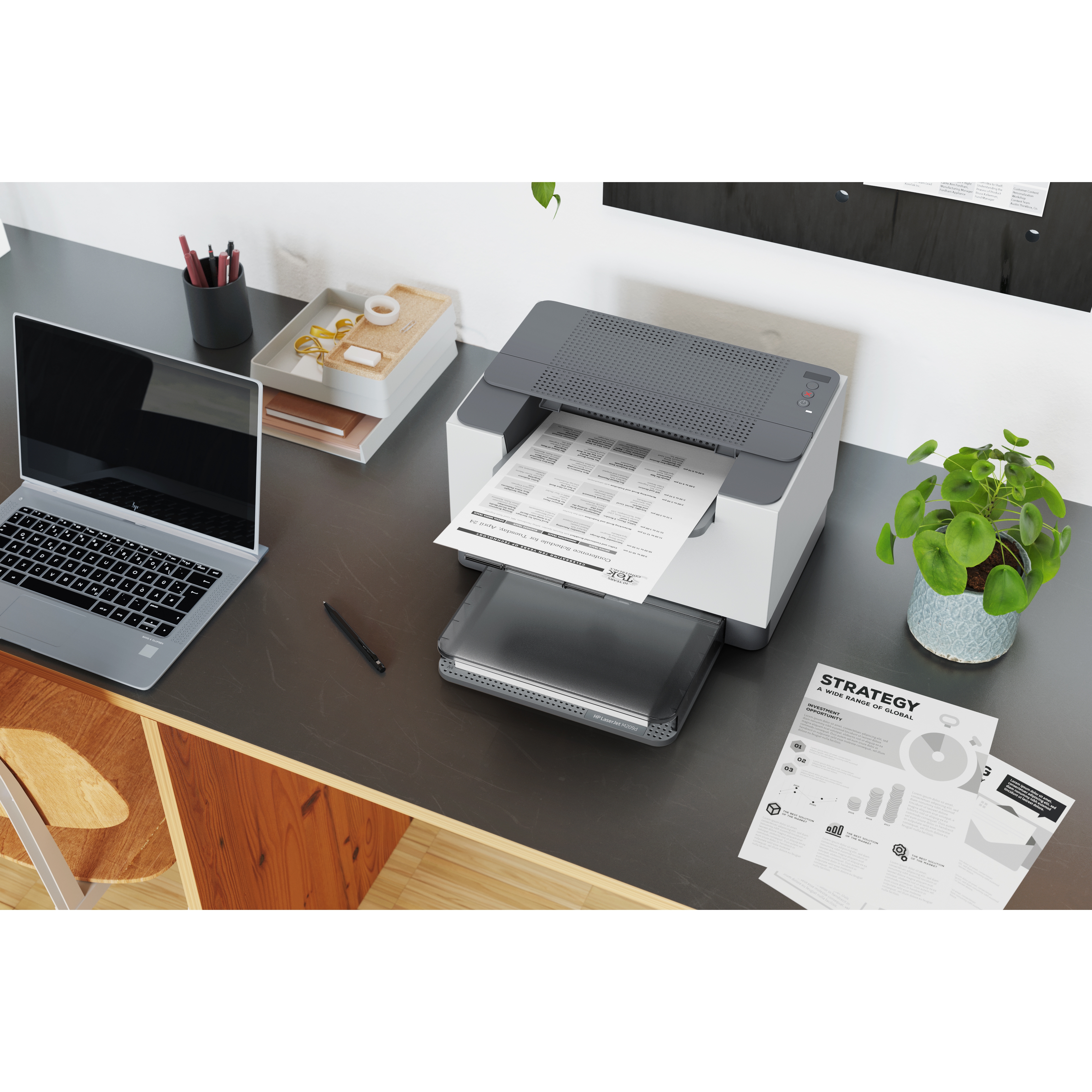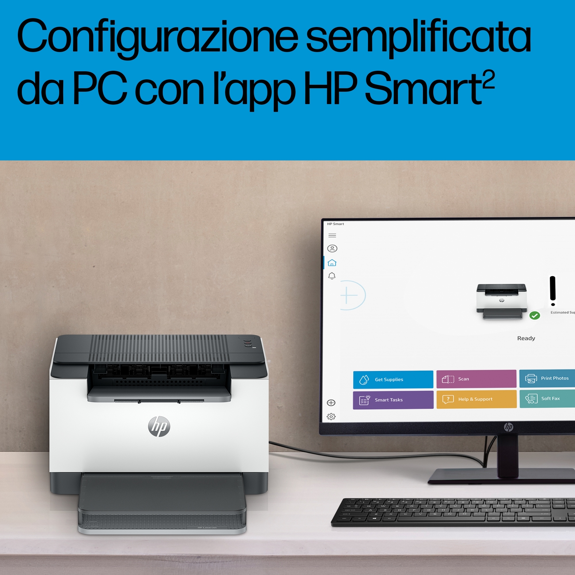 Super efficiente. Super compatta. Aumenta la produttività grazie a una stampante monocromatica compatta,<sup>[2]</sup> che ti offre: stampa fronte/retro rapida<sup>[8]</sup>, funzionalità configurazione semplificata e anche Scorciatoie per risparmiare tempo con lapp HP Smart.<sup>[3]</sup><br><br>