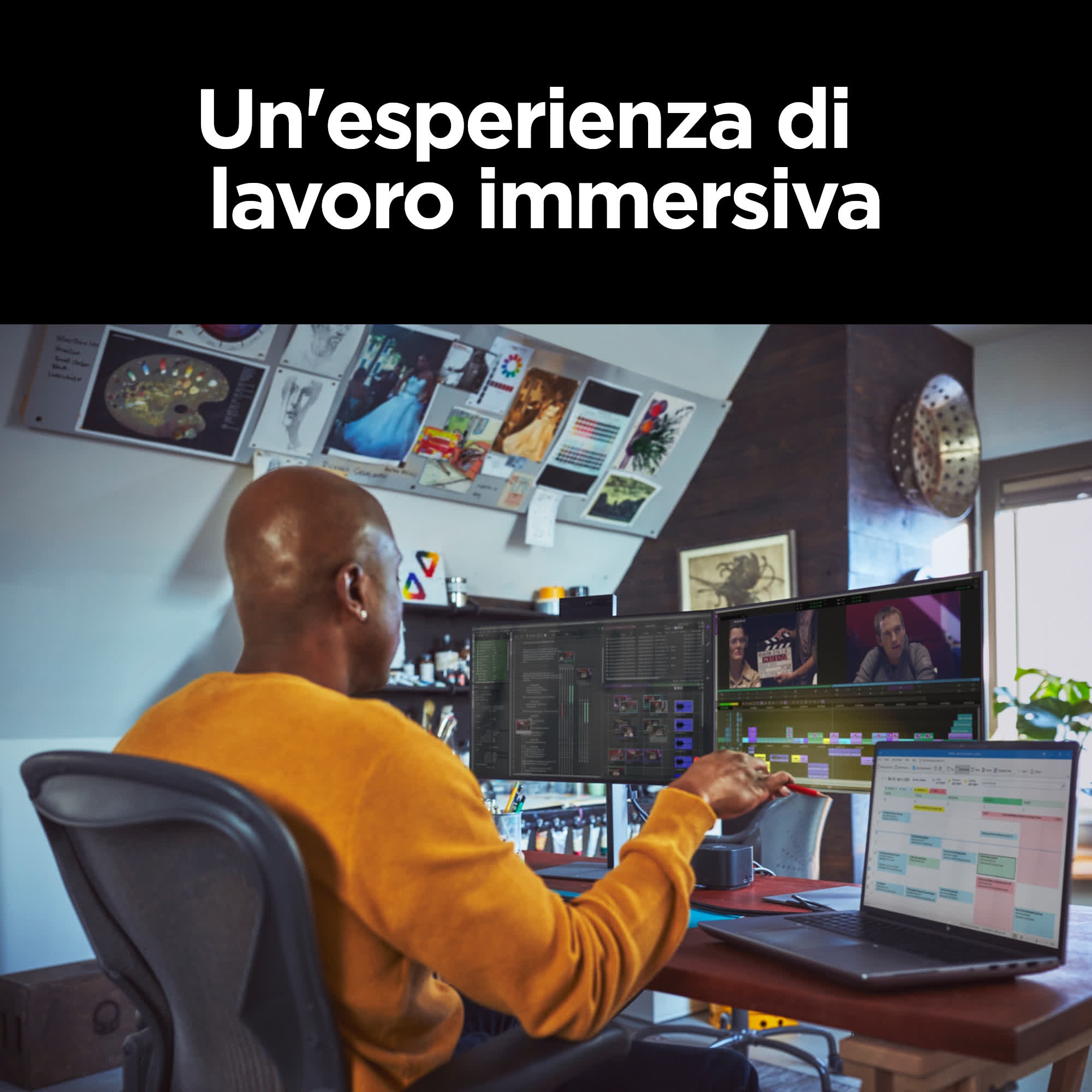Un notebook con la potenza di un desktop<br>ZBook Fury è un notebook dotato di una potente CPU di classe desktop: grazie a questa, potete gestire con semplicità anche i progetti più complessi. Con la scheda grafica integrata o dedicata, uno schermo straordinario e tutta una serie di funzionalità di collaborazione, potete lavorare con facilità ai vostri progetti di videoediting in 8K, creare rendering in 3D o addestrare modelli di machine learning. Eccellenti prestazioni di livello professionale, ovunque vi porti il lavoro.