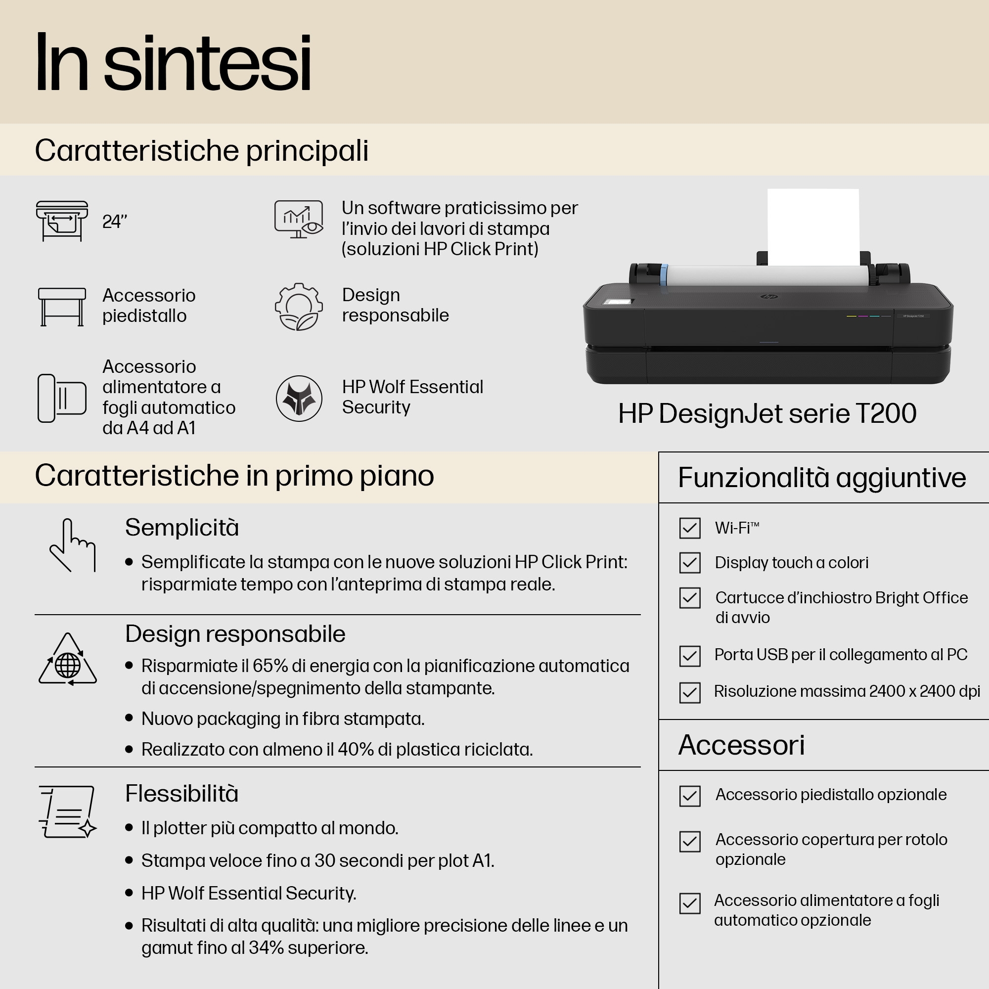 Hp plotter designjet t230 24" a1, glan/wifi, taglierina automatica, piedistallo opzionale
