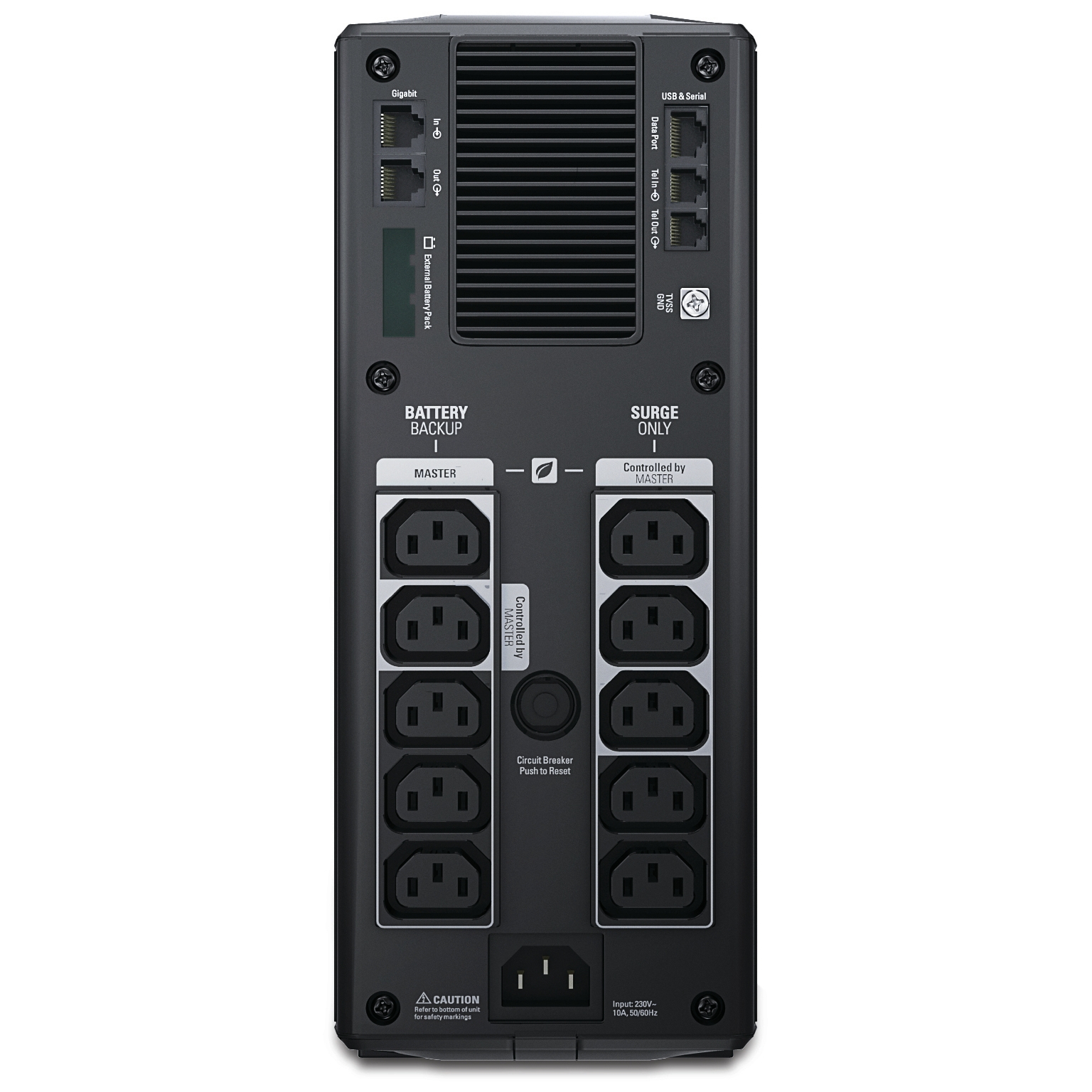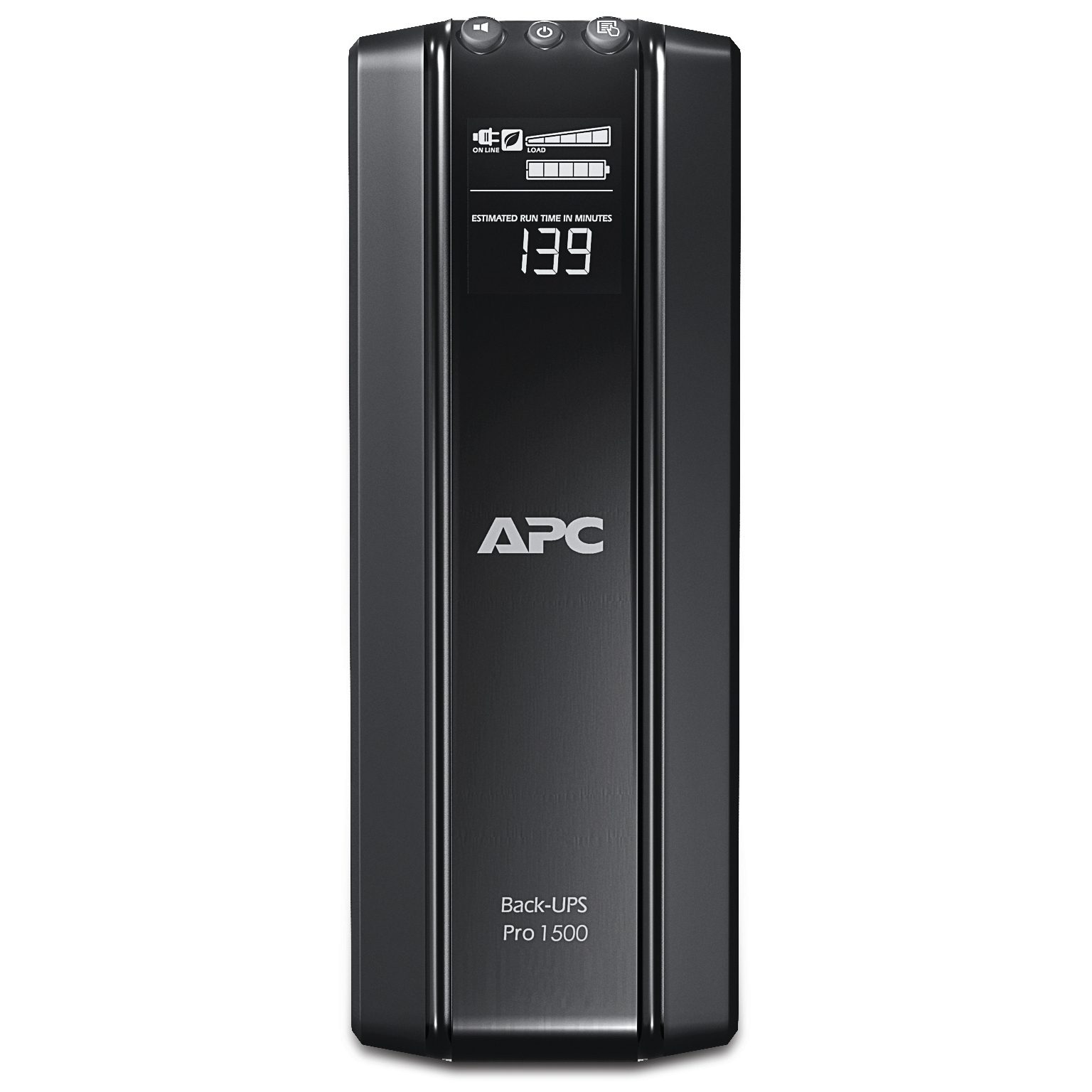 APC Back-UPS Pro. Topologia UPS: A linea interattiva, Potenza in uscita: 1,5 kVA, Potenza in uscita: 865 W. Tipo di uscita AC: Accoppiatore C13, Presa di corrente: Accoppiatore C14, Quantità prese AC: 10 presa(e) AC. Tecnologia batteria: Acido piombo (VRLA), Capacità della batteria: 187 VAh, Tempo di salvataggio minimo a pieno carico: 3,7 min. Colore del prodotto: Nero, Tipo di display: LCD. Certificati di conformità: RoHS, Certificazione: A-tick, C-tick, CE, GOST, GS Mark, Telepermit, TUV, REACH, PEP, EOLI, NEMKO-GS
