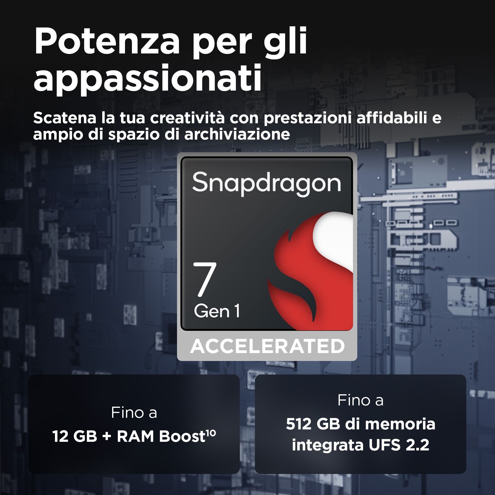 6.67" pOLED Endless Edge, 20:9, Super HD+ (2712 x 1220px), Snapdragon 7 Gen 1 Accelerated Edition, 12/512GB, 50MP + 13MP + 10MP/32MP, Bluetooth 5.2, 802.11 a/b/g/n/ac/ax, 5G, USB Type-C, NFC, Android 14