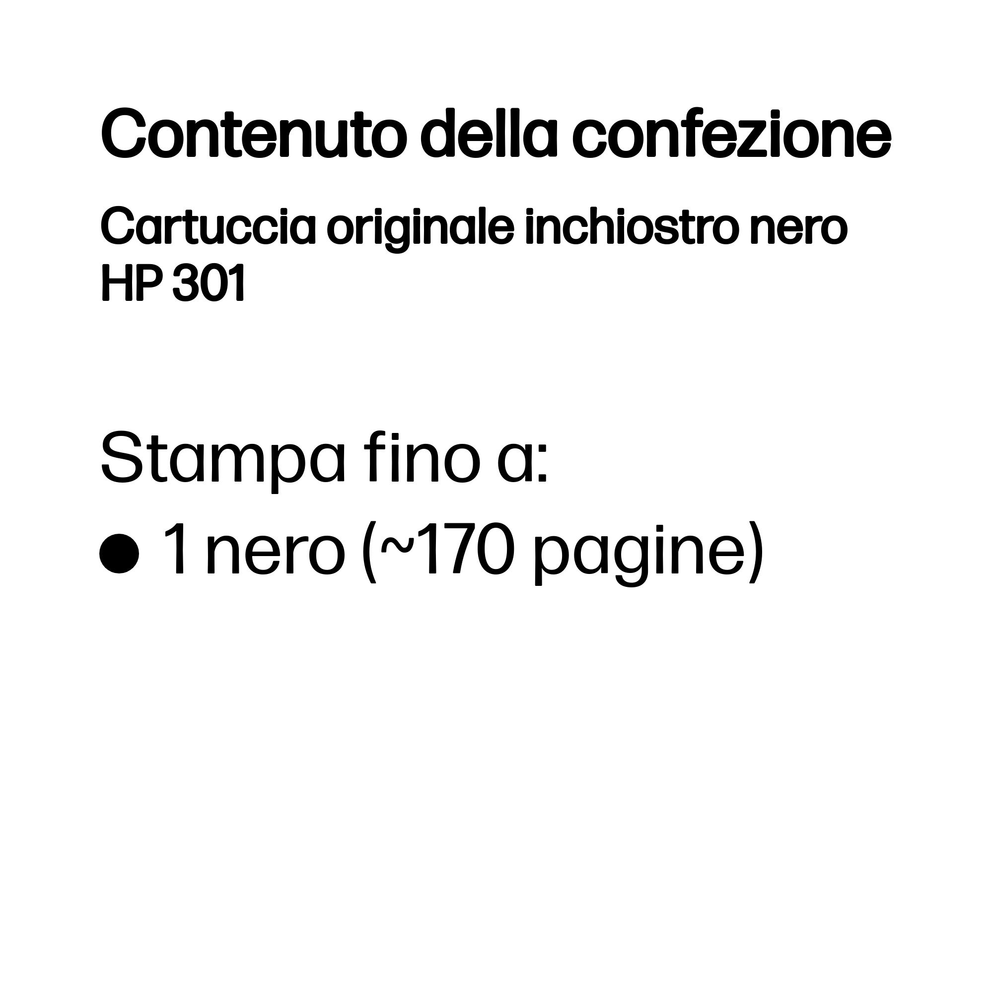 HP Cartuccia originale inchiostro nero 301, Resa standard, Nero, Inchiostro a base di pigmento, 3 ml, 1 pz, 170 pagine