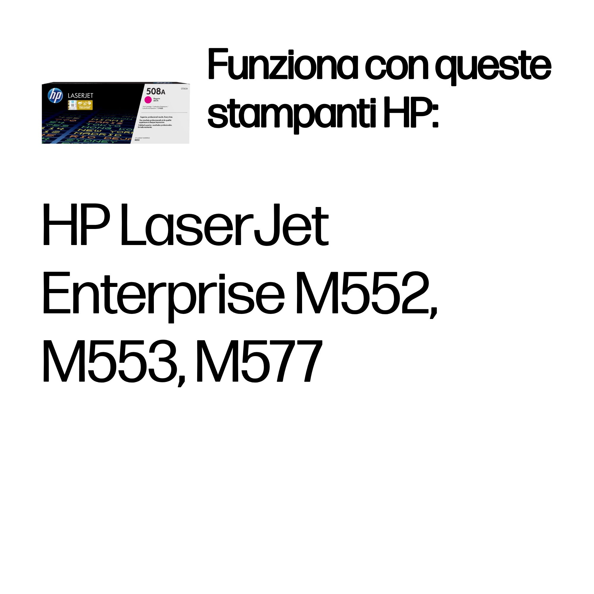 HP Cartuccia Toner magenta originale LaserJet 508A. Resa in pagine del toner a colori: 5000 pagine, Colori di stampa: Magenta, Quantità per pacco: 1 pz