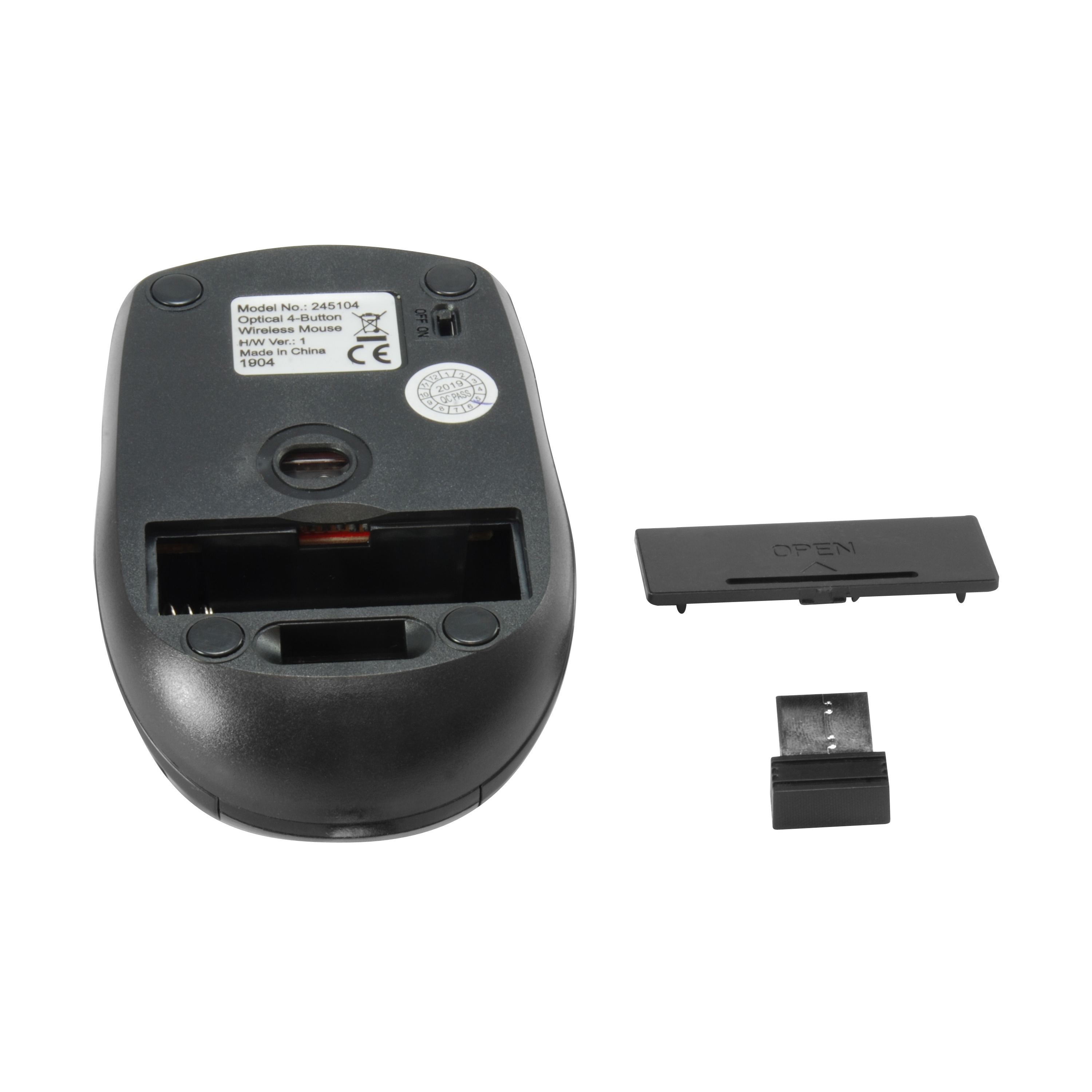 Equip 245104. Fattore di forma: Ambidestro. Tecnologia di rilevamento del movimento: Ottico, Interfaccia dispositivo: RF Wireless, Risoluzione movimento: 1600 DPI, Tipo di pulsanti: Tasti premuti, Numero di tasti: 4, Tipo di scorimmento: Rotella. Alimentazione: Batterie. Colore del prodotto: Nero