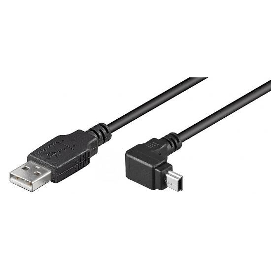 Cavi di connessione usb 2.0, tipo a - mini b (5pin), m/m, conforme a usb 2.0.per il collegamento di dispositivi usb esterni (con presa mini b (5 poli), per esempio lettore mp3, cellulare o custodia esterna per hdd) all'host usb (ad esempio pc, notebook). velocit? di trasferimento dati fino a 480 mbps (high-speed).il connettore a 90 gradi ne permette l'inserimento anche in ambienti dove ci sia poco spazio.in rame, sezione awg28 * connettore 1: usb a, maschio * connettore 2: mini usb b, 5-pin, maschio a 90? * a norma usb: compatibile usb 2.0 * connettore: placcato in nickel * cavo colore: nero * connettore colore: nero * lunghezza: 1,80 metri