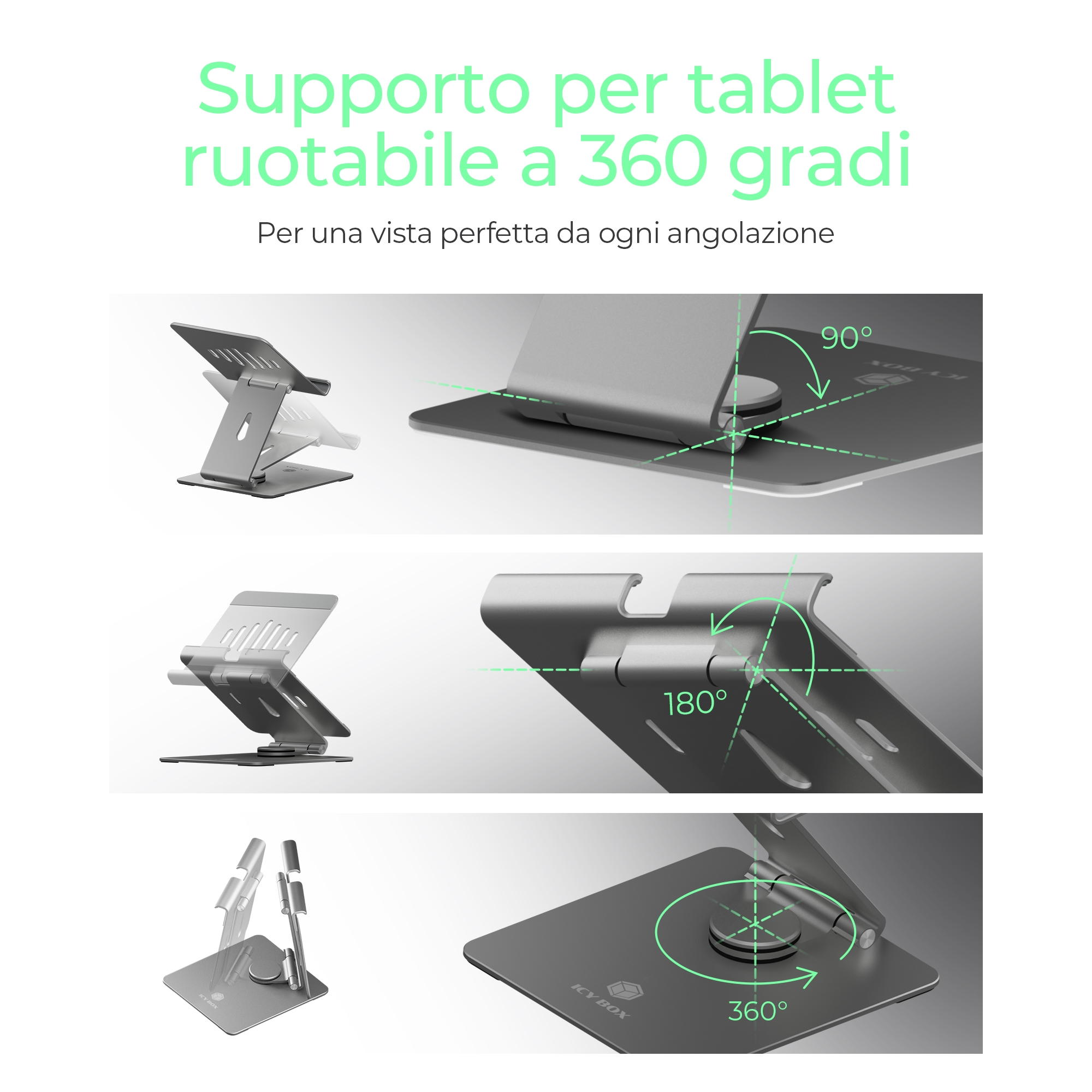 ICY BOX IB-TH200-R, Supporto per tablet, Alluminio, Alluminio, 32,8 cm (12.9"), 1,25 kg, 0 - 270°