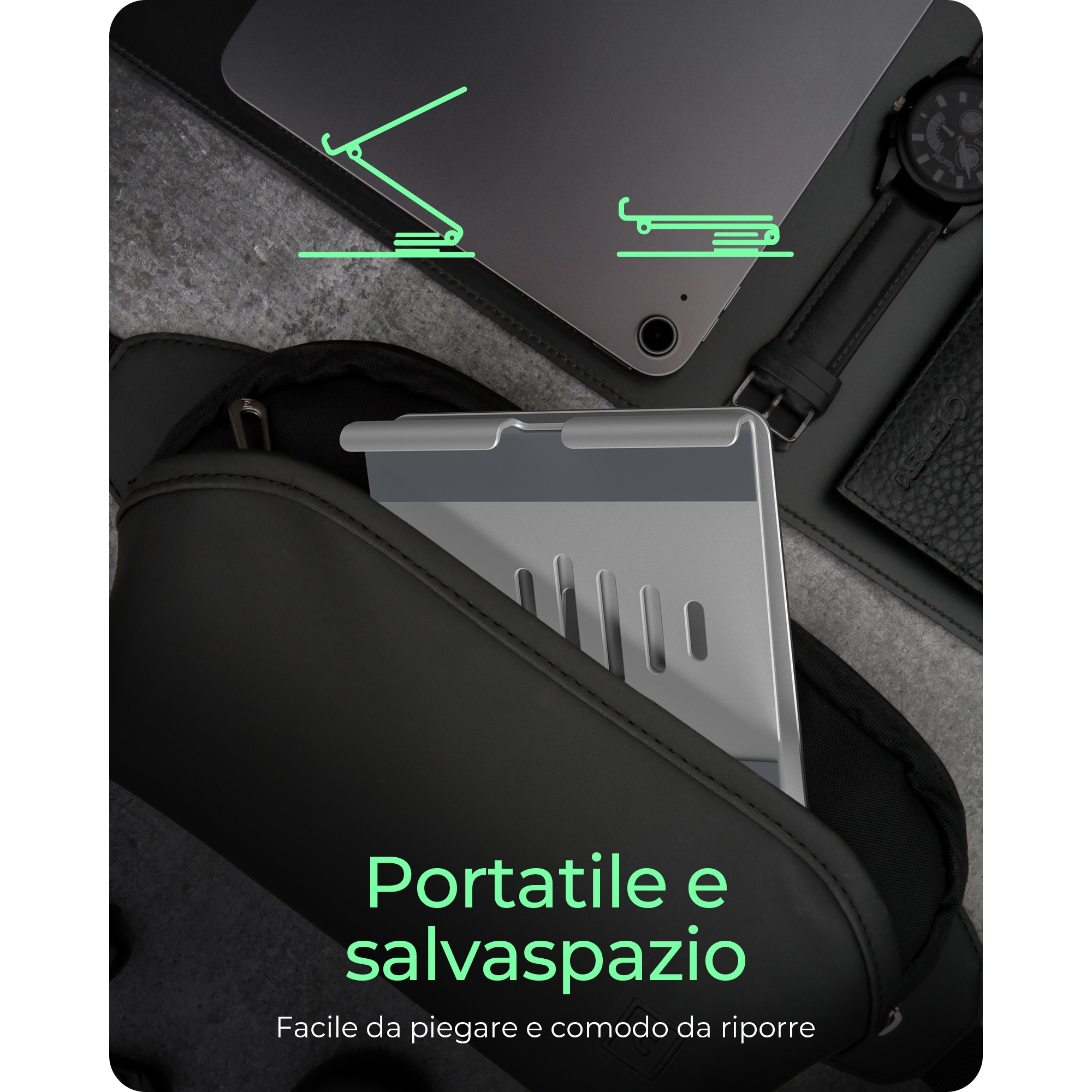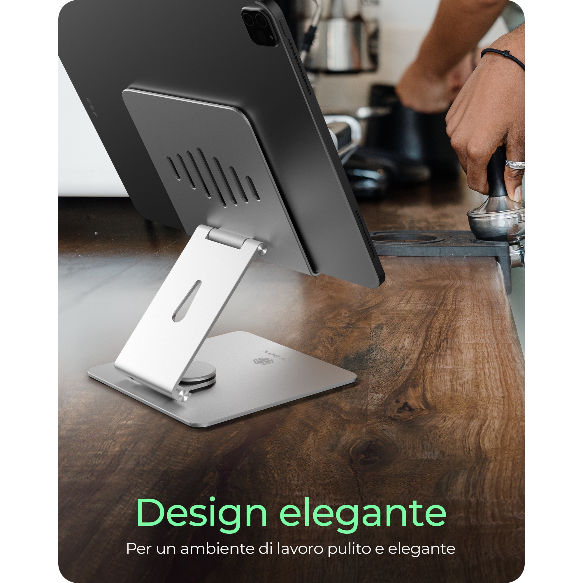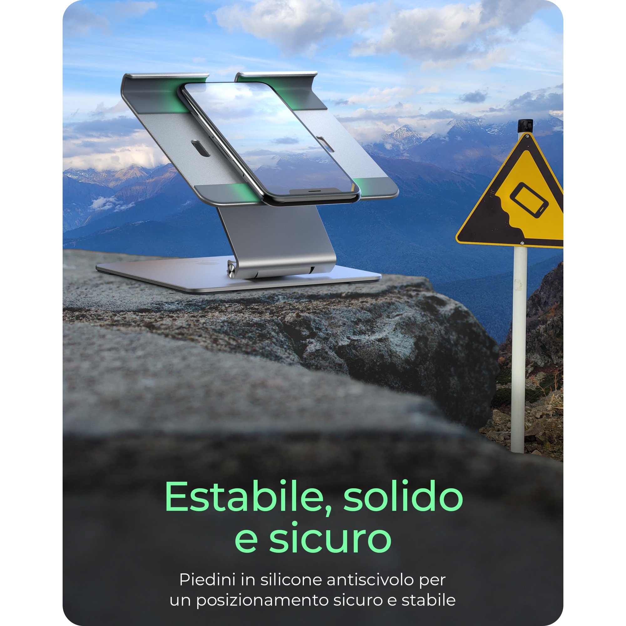 Supporto per tablet fino a 12.9", girevole e regolabile, alluminio