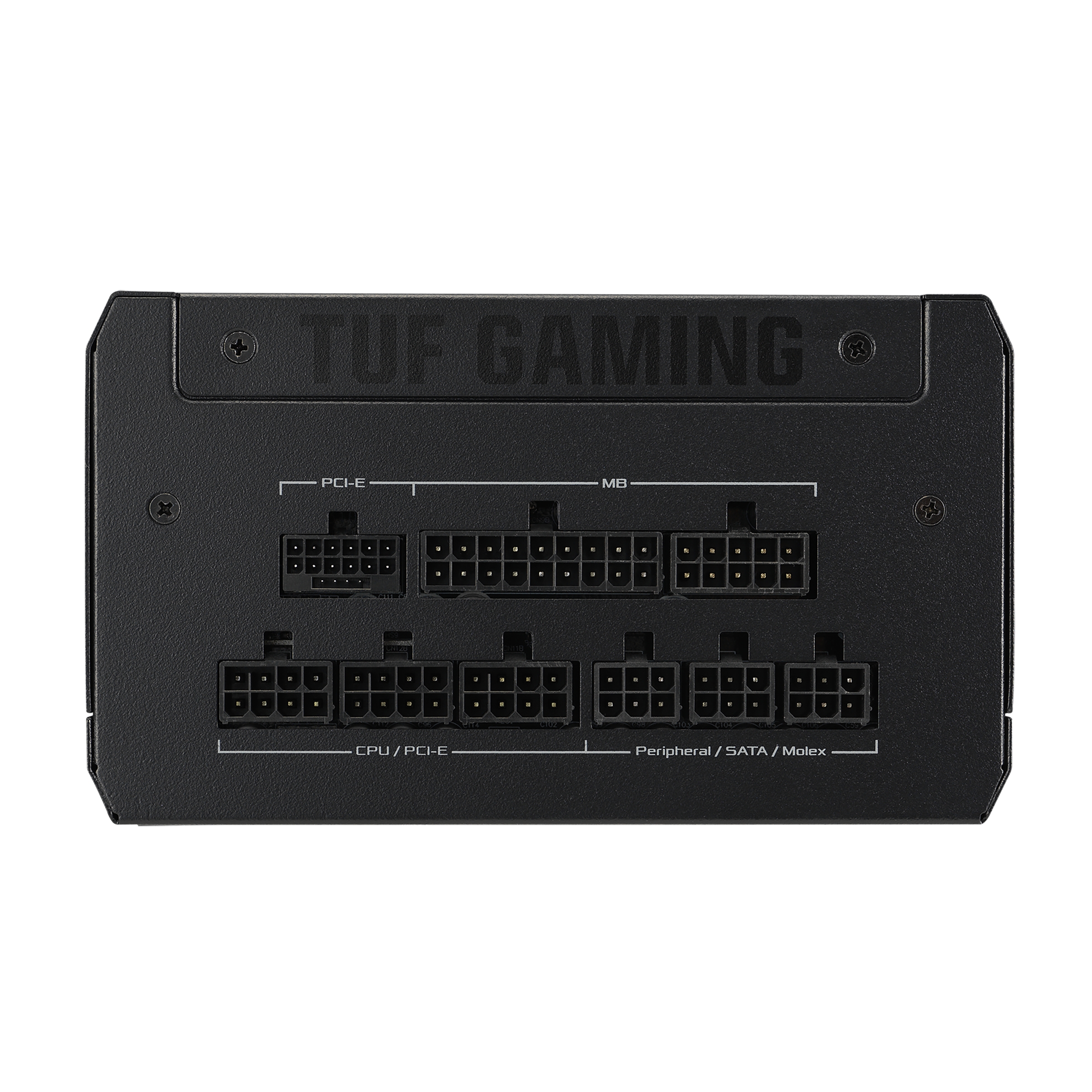 ASUS TUF Gaming 750W Gold. Potenza totale: 750 W, Tensione di ingresso AC: 100 - 240 V, Potenza combinata (+3.3V): 130 W. Connettore scheda madre: 20+4 pin ATX, Lunghezza del cavo di alimentazione della scheda madre: 61 cm, Lunghezza del cavo di alimentazione SATA: 120,400 mm. Utilizzo: PC, Fattore di forma dell'unità di alimentazione (PSU): ATX, Certificazione 80 PLUS: 80 PLUS Gold. Colore del prodotto: Nero, Tipo di raffreddamento: Attivo, Diametro del ventilatore: 13,5 cm. Cavi inclusi: AC, CPU, PCIe, Peripheral (Molex), SATA
