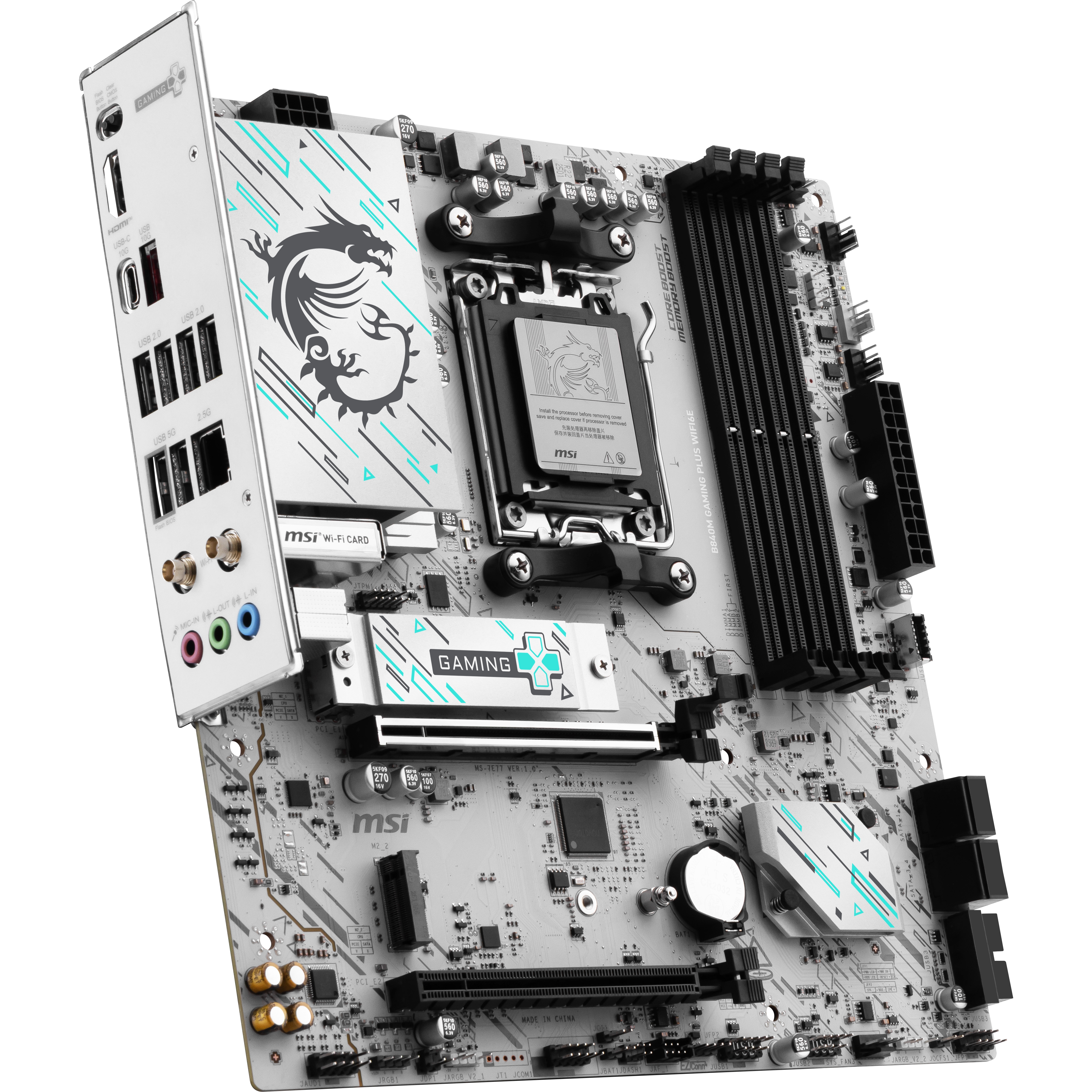 MSI B840M GAMING PLUS WIFI6E. Produttore processore: AMD, Presa per processore: Socket AM5, Processori compatibili: AMD Ryzen 7000 Series, AMD Ryzen 8000 Series, AMD Ryzen 9000 Series. Tipi di memoria supportati: DDR5-SDRAM, RAM massima supportata: 256 GB, tipo di slot di memoria: DIMM. Interfacce dell'unità di archiviazione supportate: M.2, Micro SATA III, Tipi di unità di archiviazione supportate: HDD & SSD, Livelli RAID: 0, 1, 10. Tipo di interfaccia Ethernet: 2.5 Gigabit Ethernet, Controller LAN: Realtek RTL8125D, Wi-Fi standard: Wi-Fi 6E (802.11ax). Componente per: PC, Fattore di forma scheda madre: micro ATX, Famiglia di chipset per scheda madre: AMD