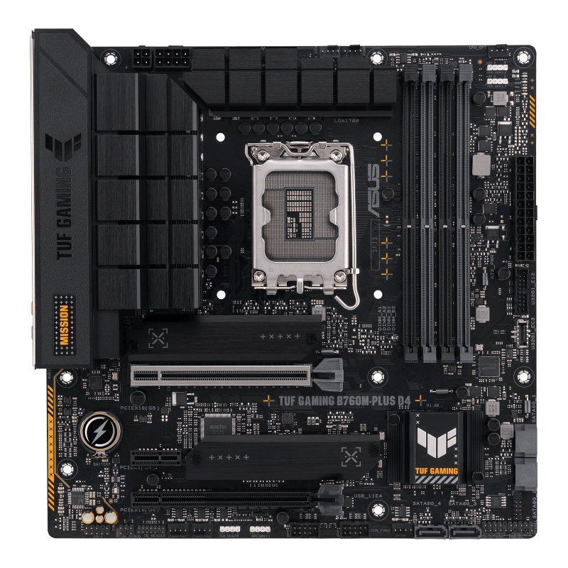 ASUS TUF GAMING B760M-PLUS D4, Intel, LGA 1700, Intel® Celeron® , Intel® Core™ i3, Intel® Core™ i5, Intel® Core™ i7, Intel® Core™ i9,..., LGA 1700, DDR4-SDRAM, 128 GB