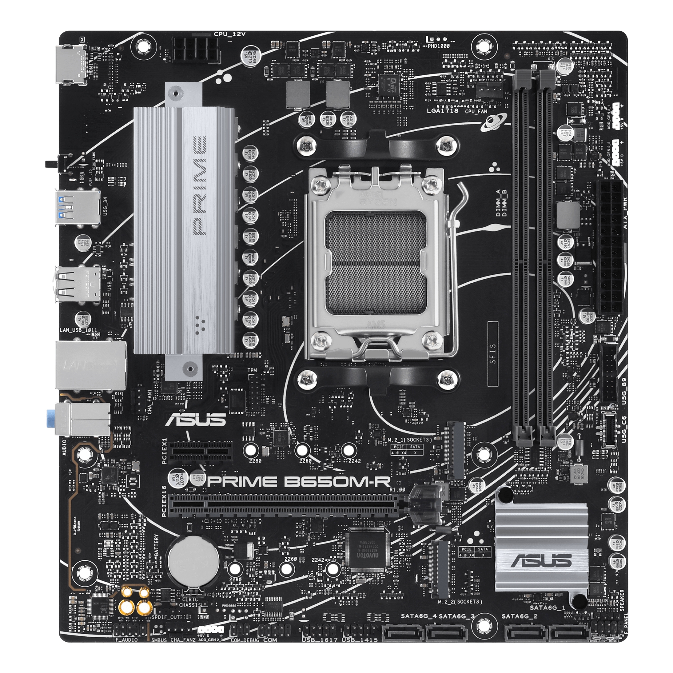 ASUS PRIME B650M-R, AMD, Socket AM5, AMD Ryzen 8000 Series, AMD Ryzen 7000 Series, Socket AM5, DDR5-SDRAM, 96 GB