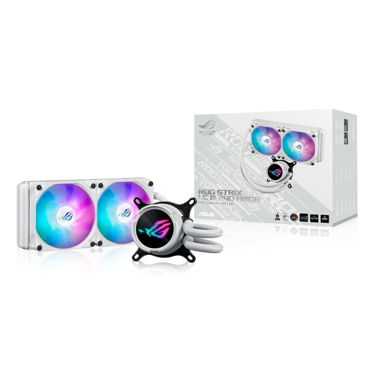 ASUS ROG Strix LC III 240 ARGB White Edition. Tipo: Kit di raffreddamento a liquido, Diametro del ventilatore: 12 cm, Rumorosità (velocità alta): 36 dB, flusso d'aria massimo: 70,38 pdc/min. Colore del prodotto: Bianco