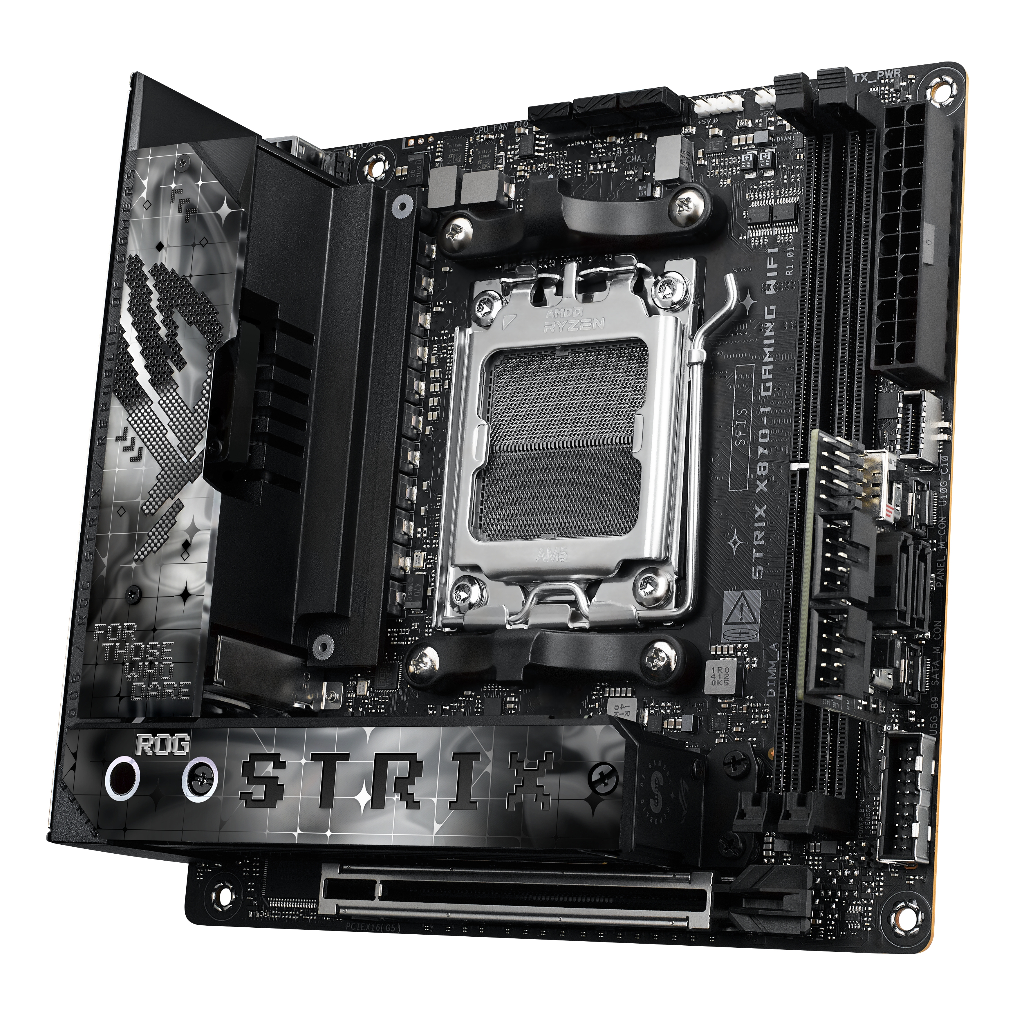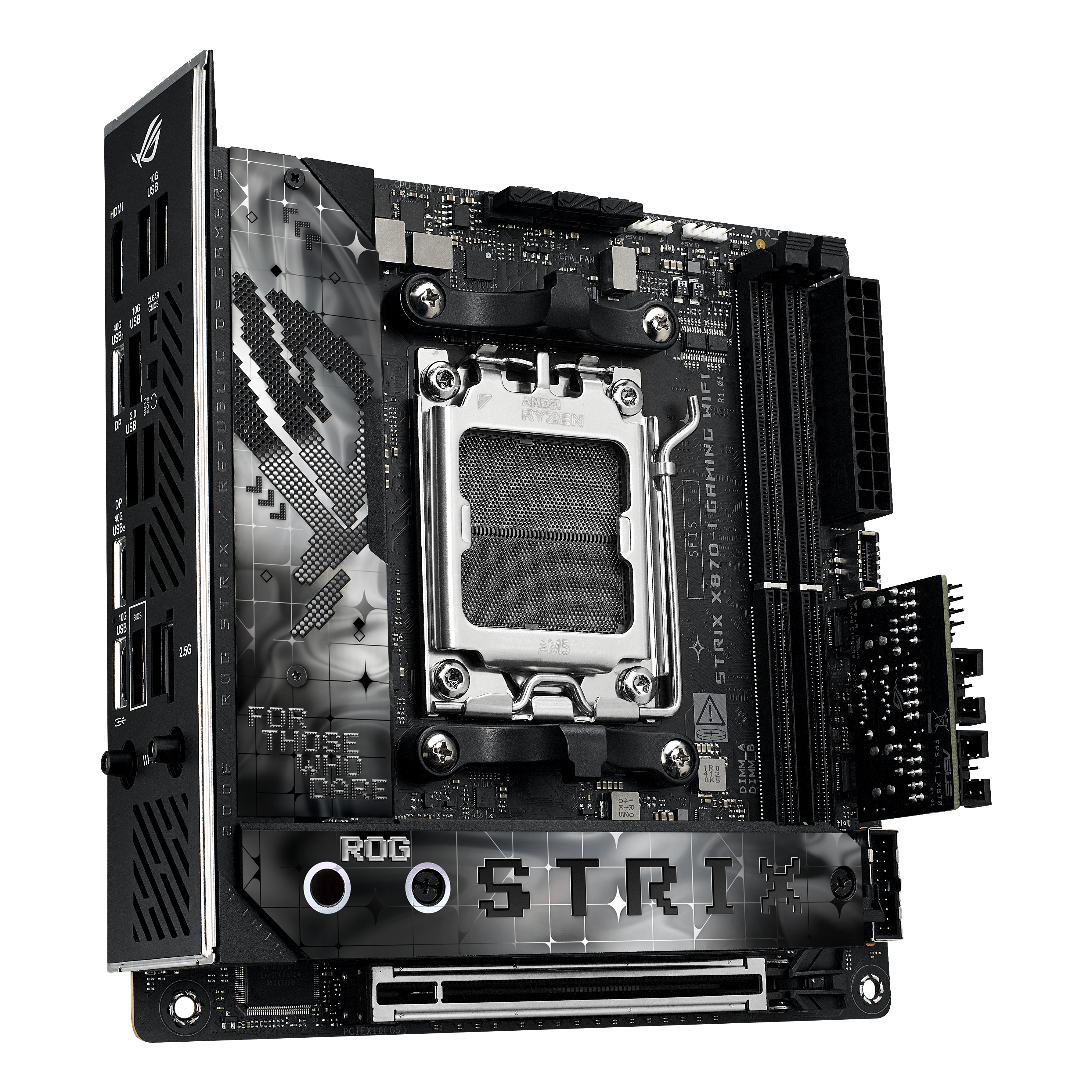 ASUS ROG STRIX X870-I GAMING WIFI, AMD, Socket AM5, AMD Ryzen 7000 Series, AMD Ryzen 8000 Series, AMD Ryzen 9000 Series, DDR5-SDRAM, 96 GB, DIMM