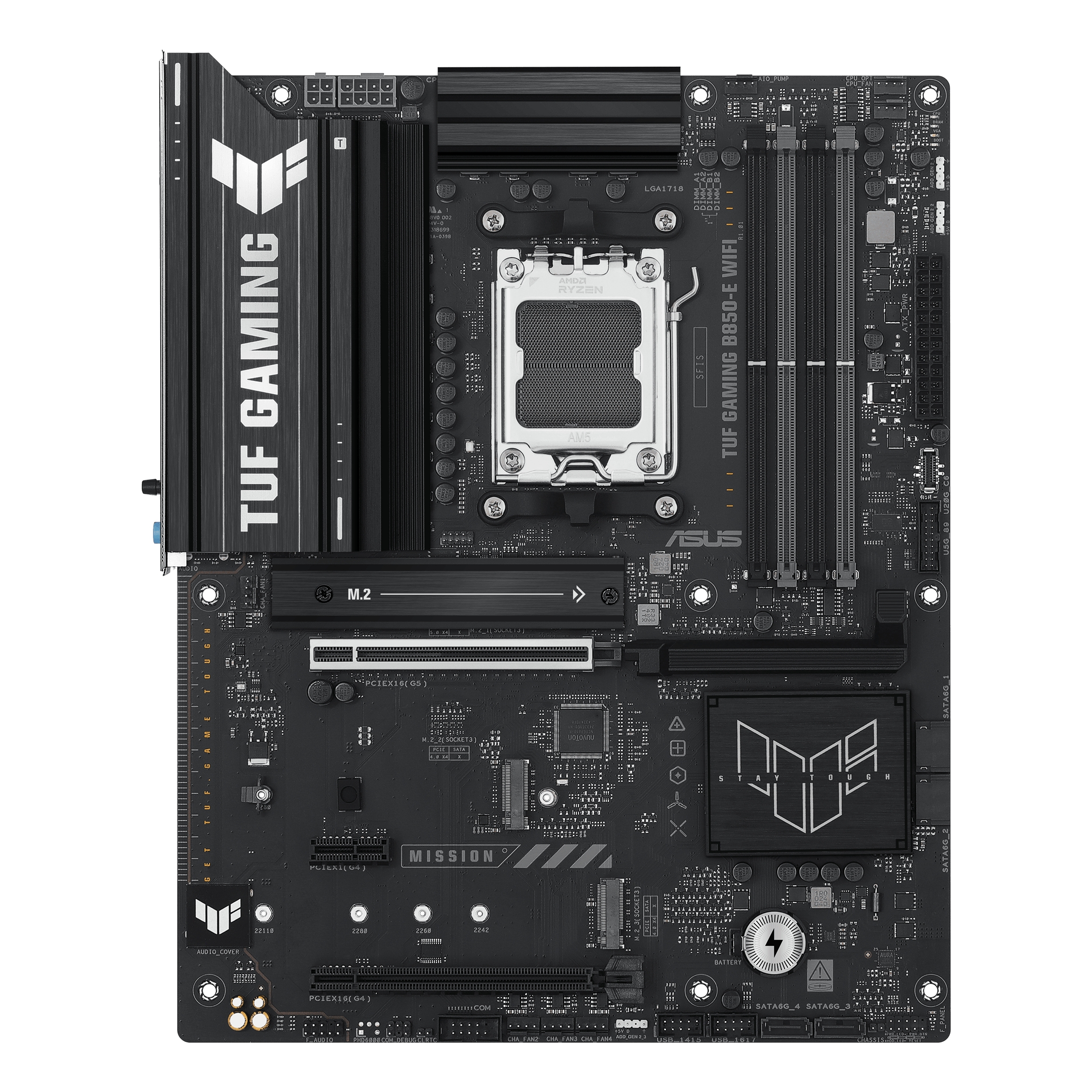 ASUS TUF GAMING B850-E WIFI, AMD, Socket AM5, AMD Ryzen 7000 Series, AMD Ryzen 8000 Series, AMD Ryzen 9000 Series, DDR5-SDRAM, 256 GB, DIMM