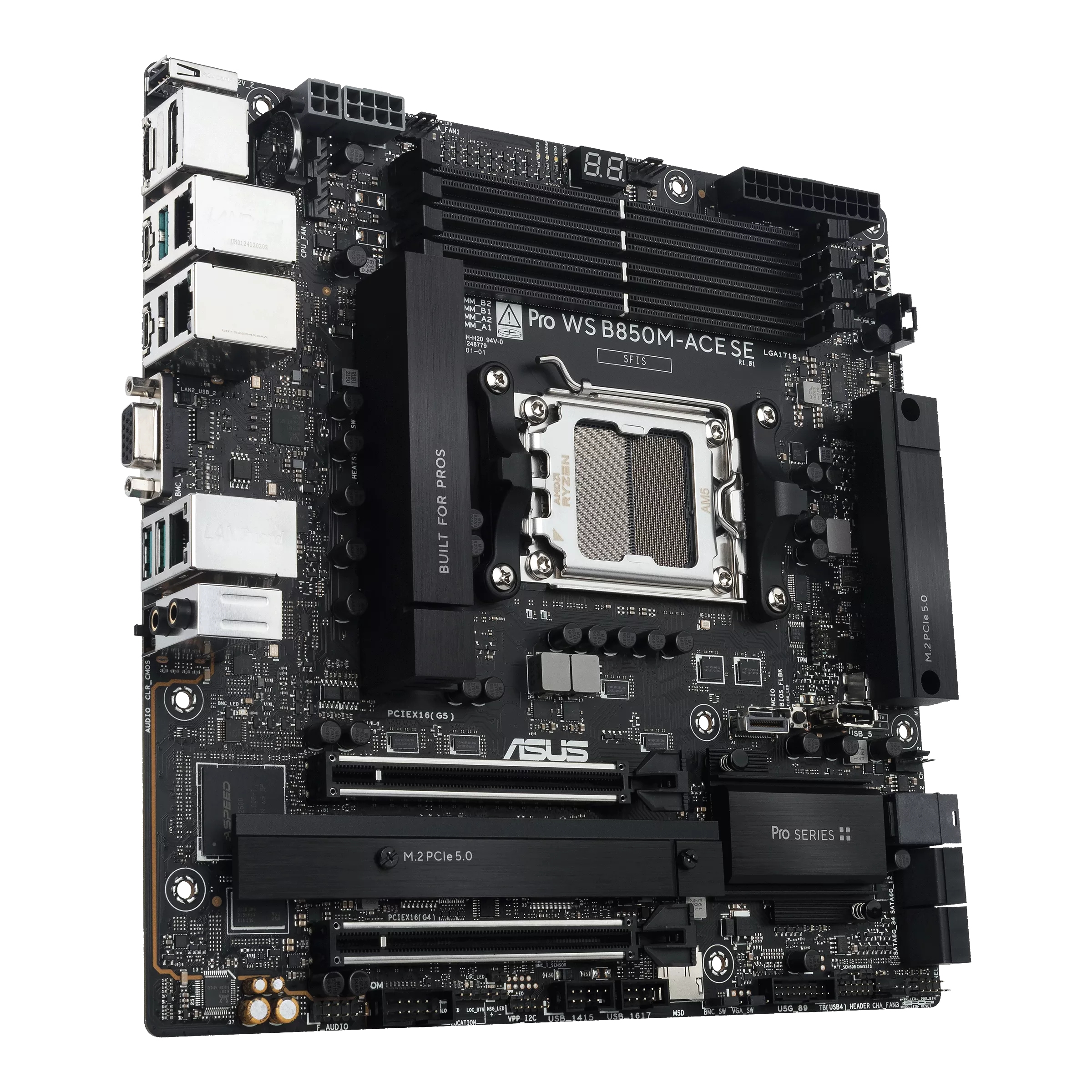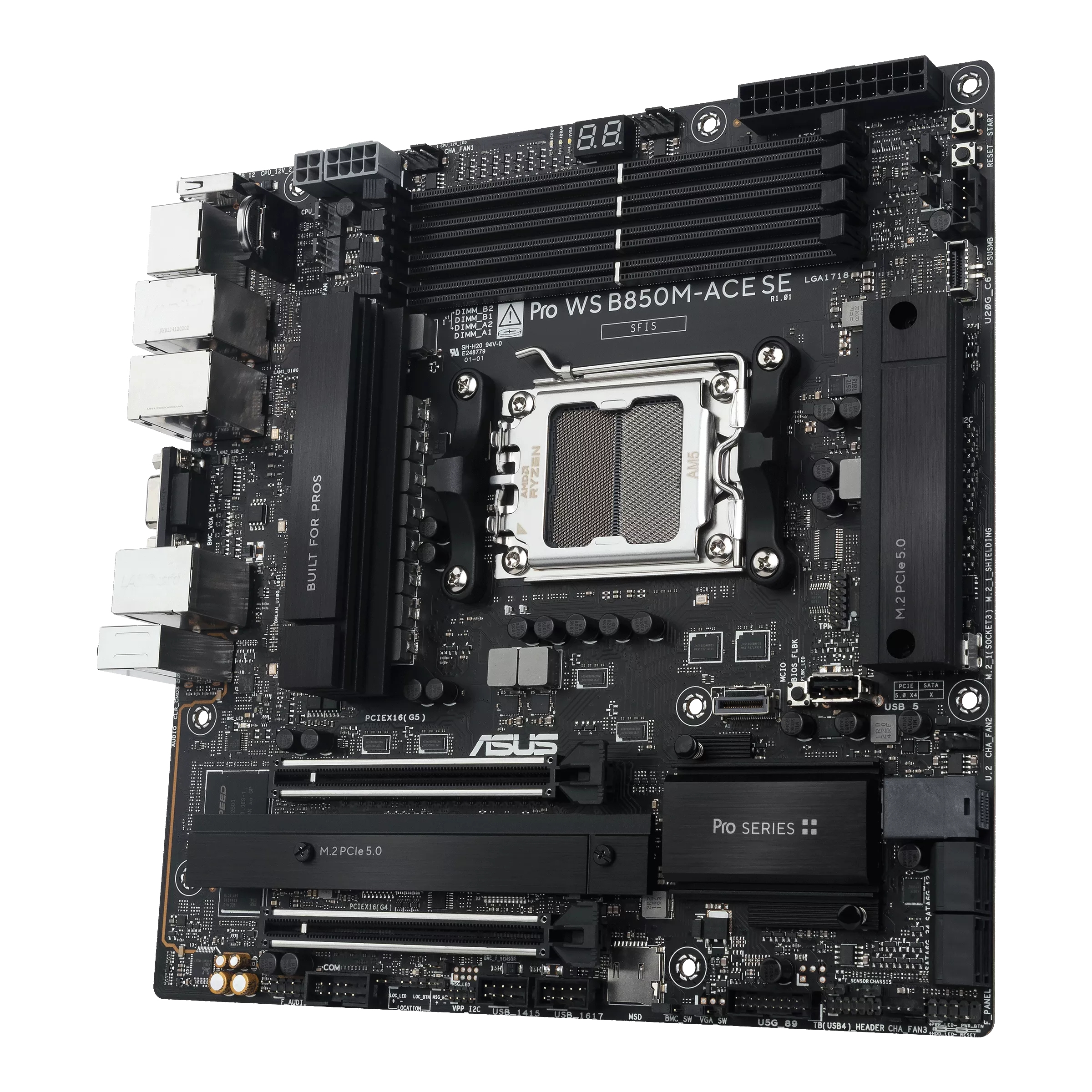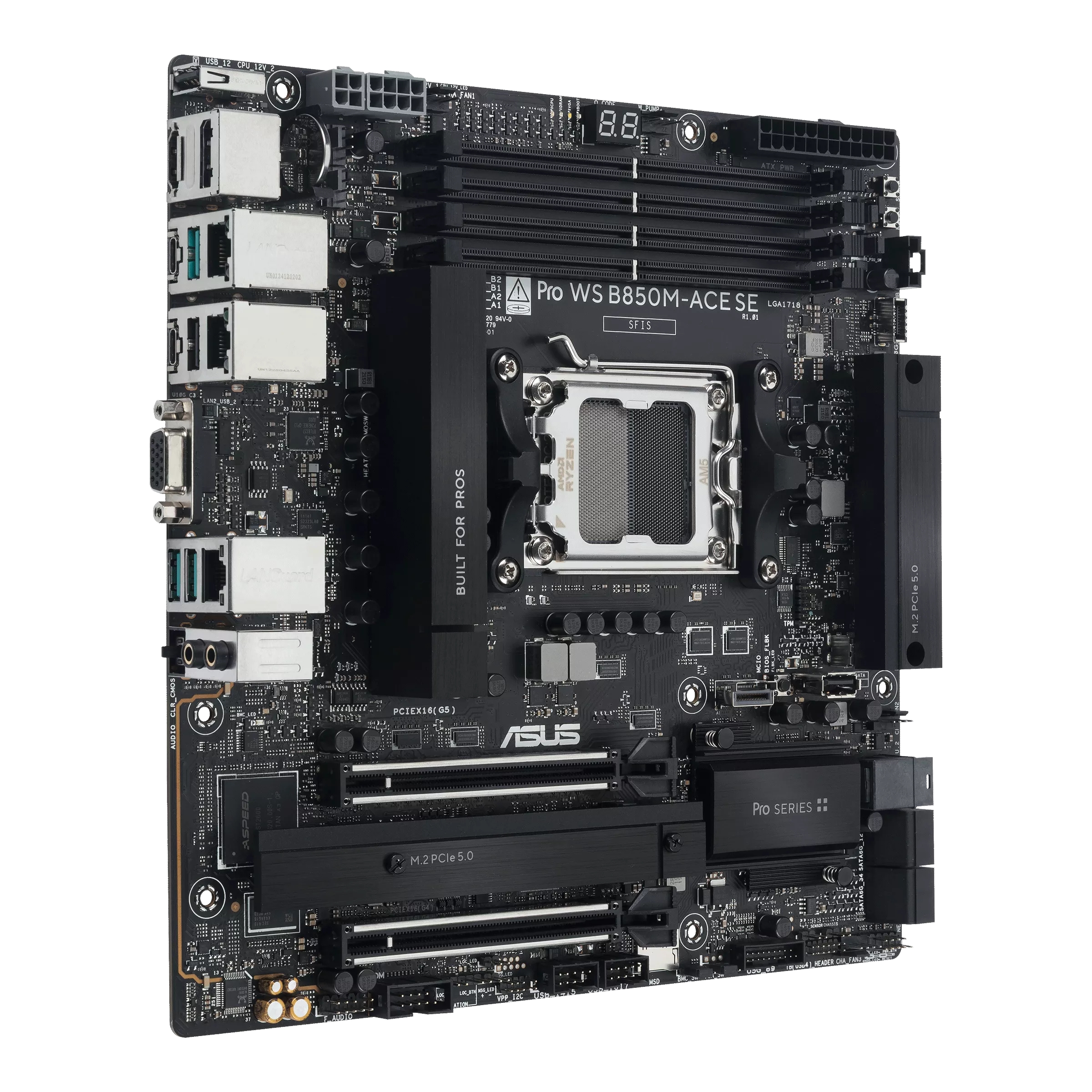 ASUS PRO WS B850M-ACE SE, AMD, Socket AM5, AMD Ryzen 7000 Series, AMD Ryzen 8000 Series, AMD Ryzen 9000 Series, Socket AM5, DDR5-SDRAM, 256 GB
