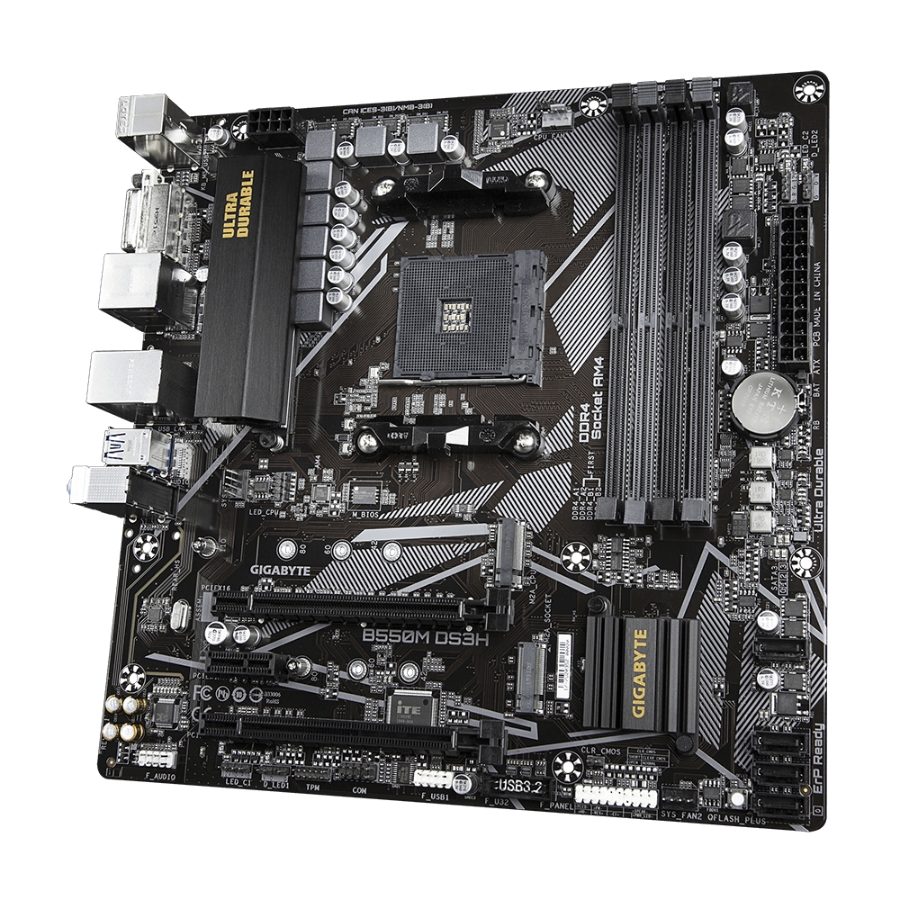Gigabyte B550M DS3H, AMD, Socket AM4, 3rd Generation AMD Ryzen™ 3, 3rd Generation AMD Ryzen 5, 3rd Generation AMD Ryzen™ 7, 3rd..., DDR4-SDRAM, 128 GB, DIMM