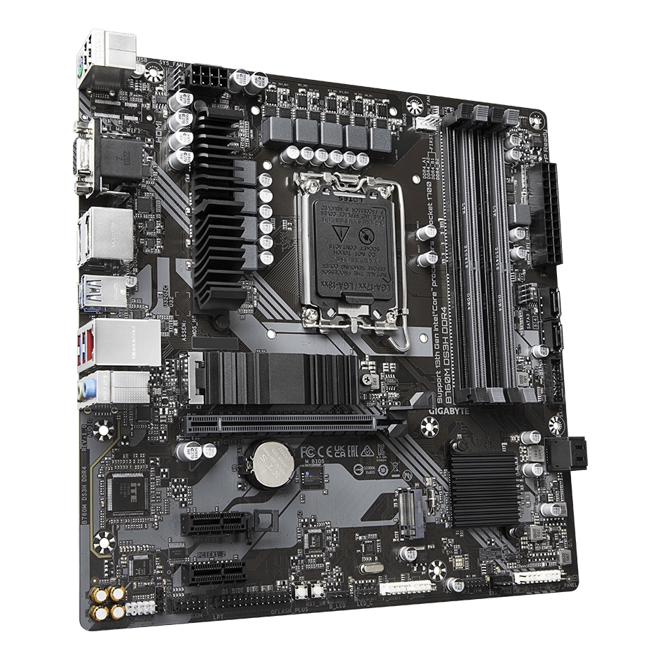 GIGABYTE B760M DS3H DDR4 Scheda Madre - Supporta CPU Intel Core di 14a Generazione, VRM Digitale 6+2+1 Fasi, fino a 5333MHz DDR4 (OC), 2xPCIe 4.0 M.2, LAN 2.5GbE, USB 3.2 Gen2, Intel, LGA 1700, Intel® Celeron® , Intel® Core&trad