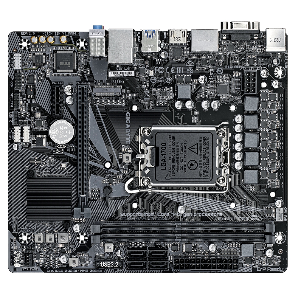 Gigabyte H610M S2H V3 DDR4, Intel, LGA 1700, Intel® Celeron® , Intel® Core™ i3, Intel® Core™ i5, Intel® Core™ i7, Intel® Core™ i9,..., LGA 1700, 64 GB, DDR4-SDRAM