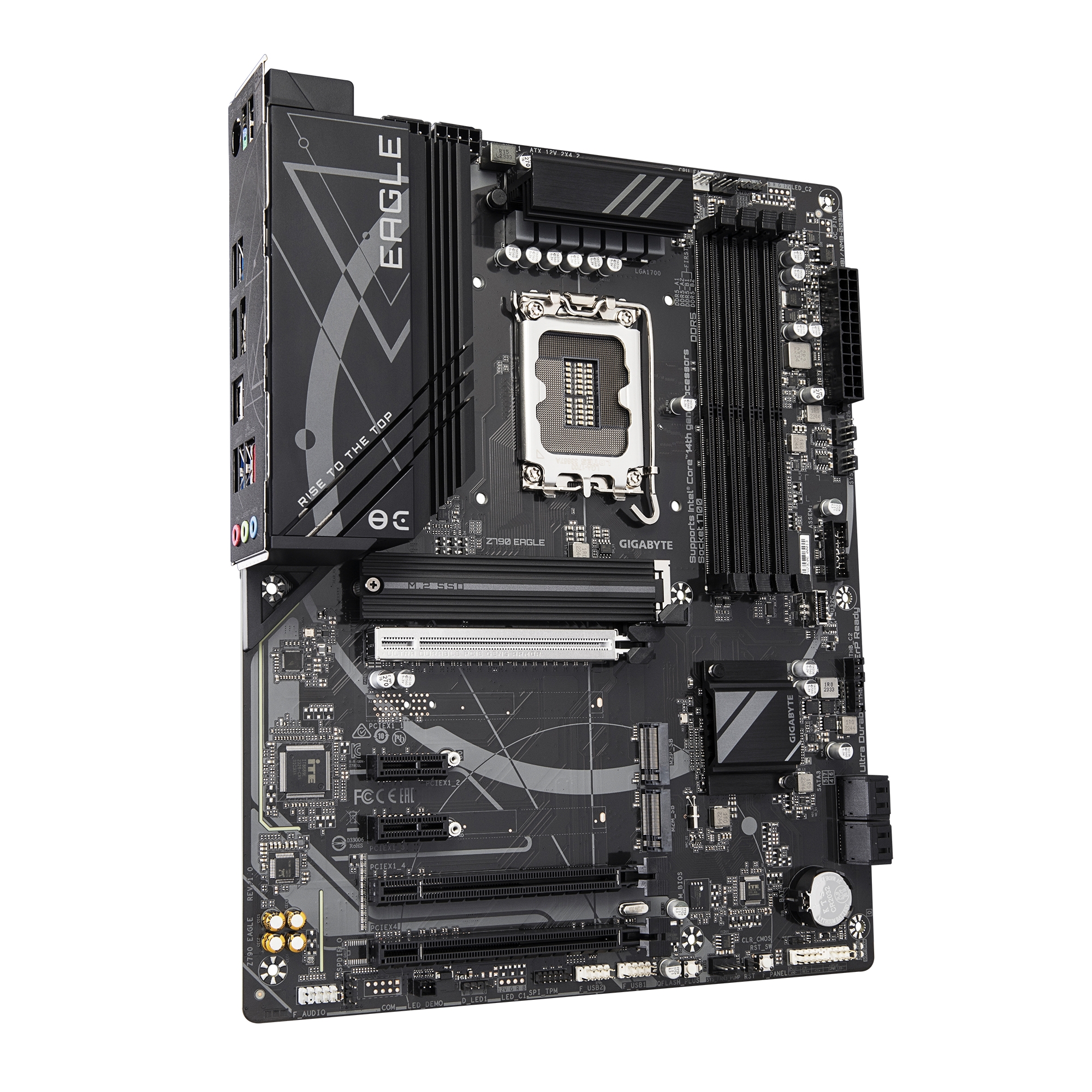 GIGABYTE Z790 EAGLE Scheda madre - Supporta CPU Intel Core di 14a generazione, VRM a 12+1+1 fasi, fino a 7600MHz DDR5 (OC), 3xPCIe 4.0 M.2, LAN 2,5GbE, USB 3.2 Gen 2. Produttore processore: Intel, Presa per processore: LGA 1700, Processori compatibili: Intel® Celeron®, Intel Core i3 12th Gen, Intel Core i3 13th Gen, Intel Core i3 14th Gen, Intel.... Tipi di memoria supportati: DDR5-SDRAM, RAM massima supportata: 256 GB, tipo di slot di memoria: DIMM. Interfacce dell'unità di archiviazione supportate: M.2, SATA III, Tipi di unità di archiviazione supportate: HDD & SSD, Livelli RAID: 0, 1, 5, 10. Risoluzione massima: 4096 x 2304 Pixel. Tipo di interfaccia Ethernet: 2.5 Gigabit Ethernet, Controller LAN: Realtek RTL8125