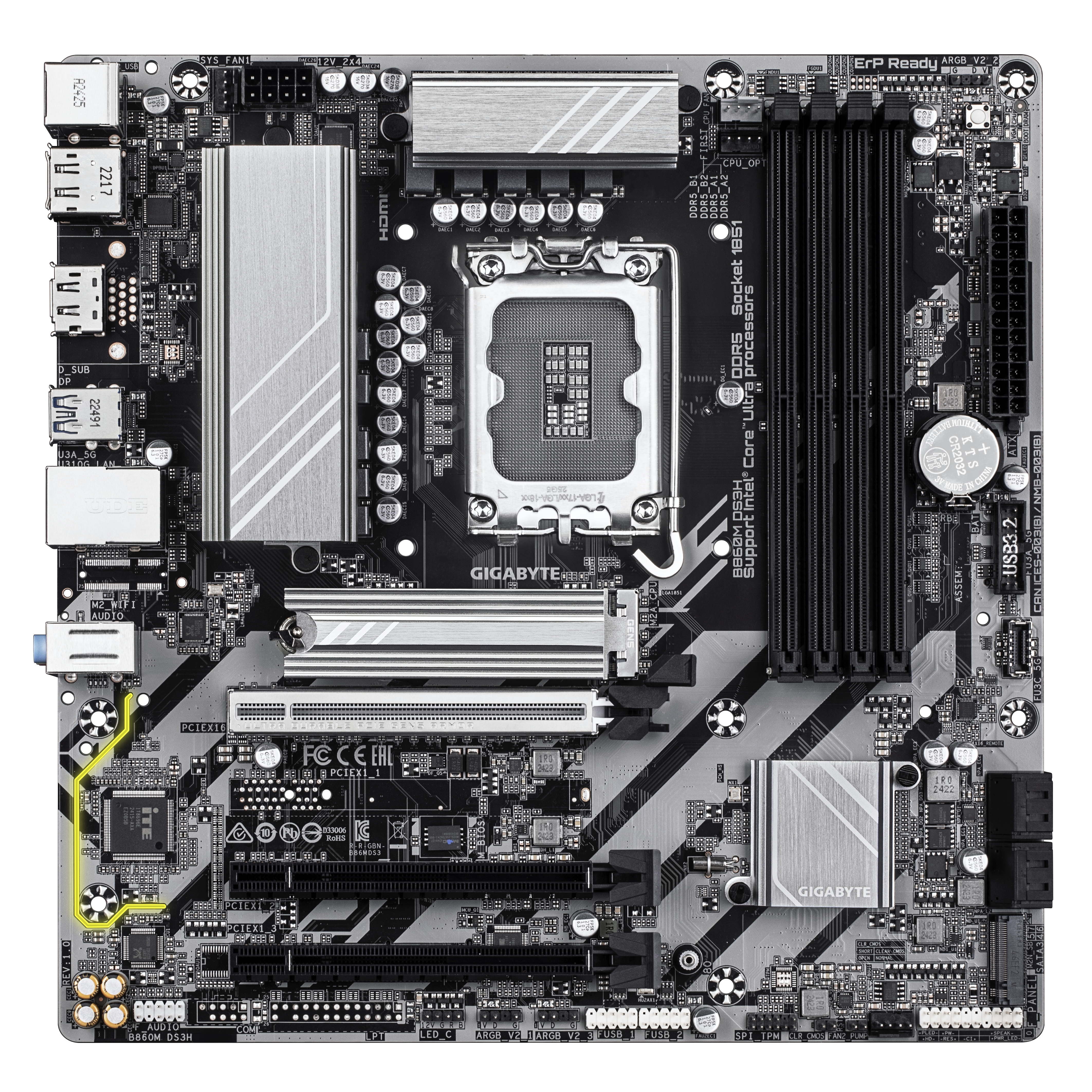 B860M DS3H Scheda madre - CPU Intel Core Ultra, VRM a 5+1+2+1 fasi, fino a 9066MHz DDR5, 1xPCIe 5.0 + 1xPCIe 4.0 M.2, LAN 2,5 GbE, USB 3.2 Gen 2
