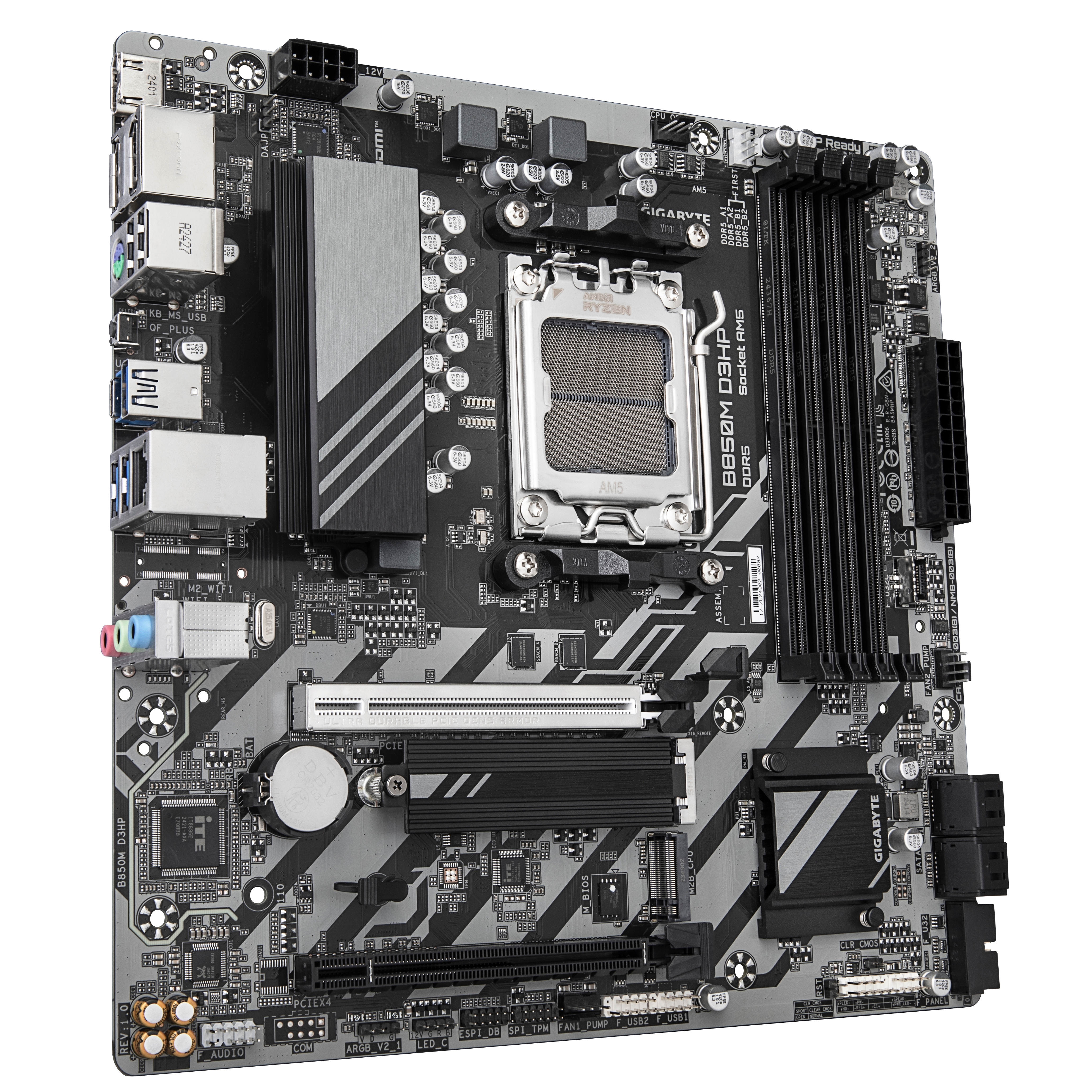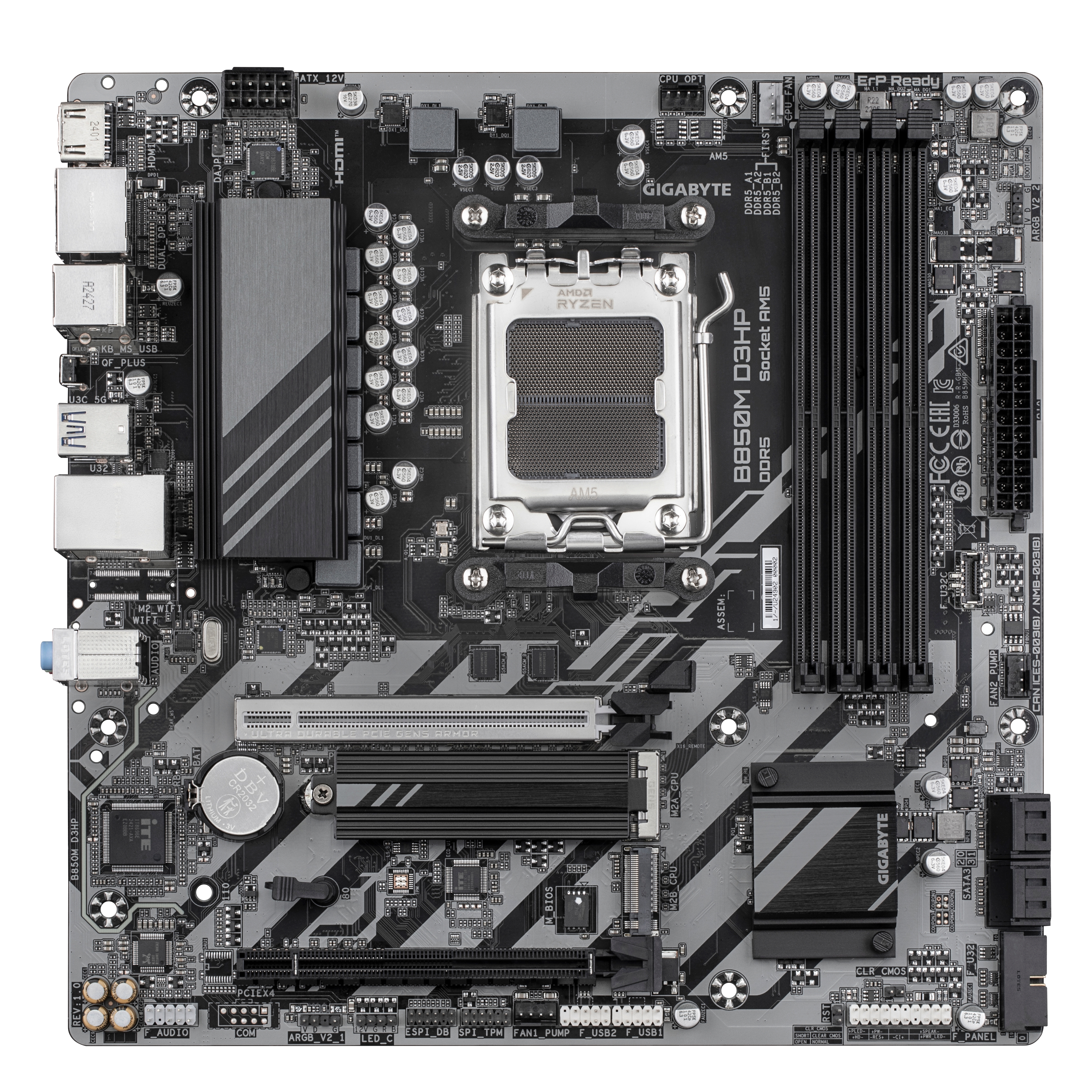 GIGABYTE B850M D3HP Scheda Madre - Processori AMD Ryzen Serie 9000, 5+2+2 fasi VRM digitali, fino a 8200MHz DDR5 (OC), 1xPCIe 5.0 + 1xPCIe 4.0 M.2, LAN GbE, USB 3.2 Gen 2. Produttore processore: AMD, Presa per processore: Socket AM5, Processori compatibili: AMD Ryzen 7000 Series, AMD Ryzen 8000 Series, AMD Ryzen 9000 Series. Tipi di memoria supportati: DDR5-SDRAM, RAM massima supportata: 256 GB, tipo di slot di memoria: DIMM. Interfacce dell'unità di archiviazione supportate: M.2, SATA III, Tipi di unità di archiviazione supportate: HDD & SSD, Livelli RAID: 0, 1, 10. Risoluzione massima: 4096 x 2160 Pixel. Tipo di interfaccia Ethernet: Gigabit Ethernet