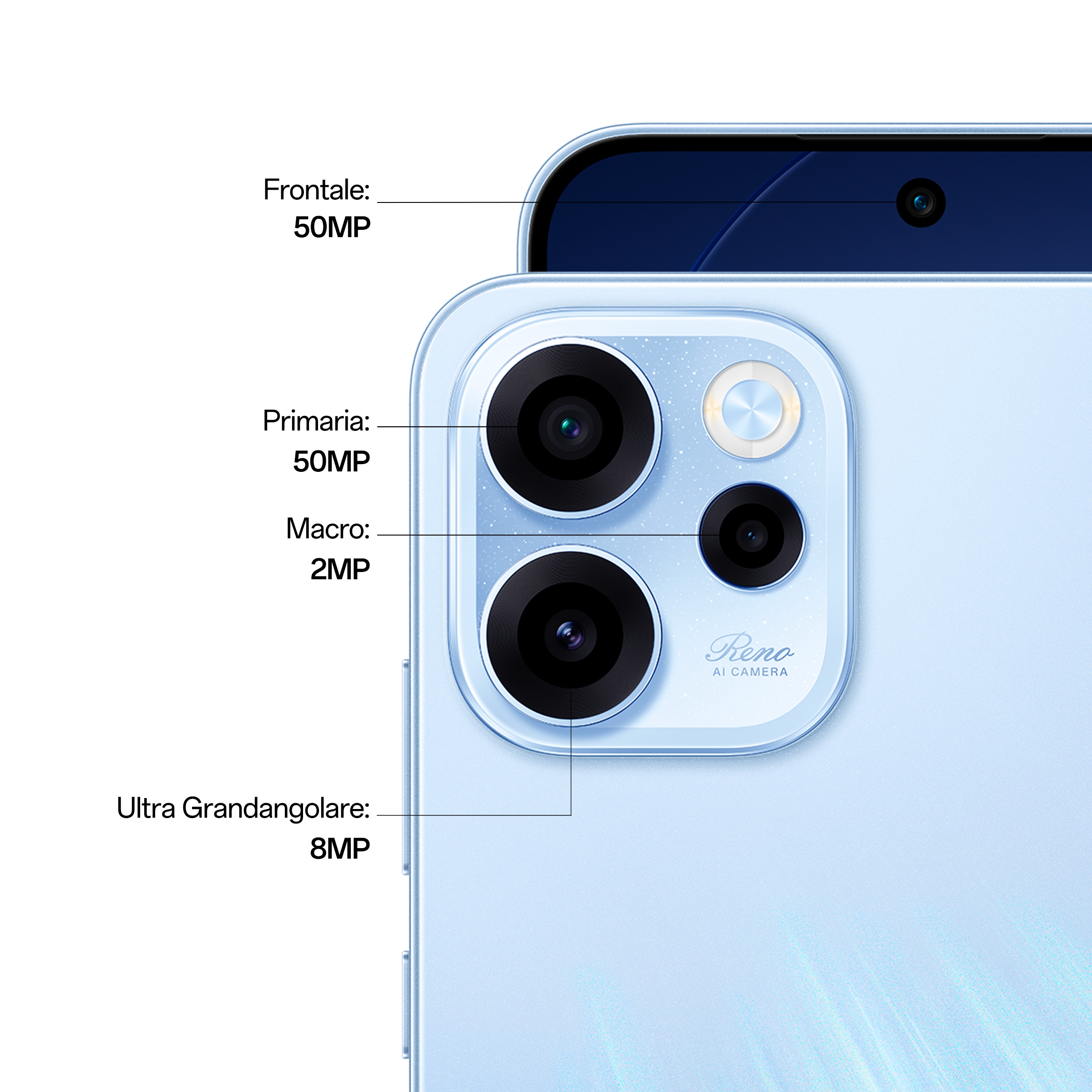OPPO Reno15 FS 5G AI Smartphone, Tripla fotocamera 50+8+2MP, Selfie 50MP, Display 6.57” 120HZ AMOLED FHD+, 6500mAh, RAM 8GB(Esp2GB/4GB/8GB)+ROM 512GB [Versione Italia], Aurora Blue. Dimensioni diagonale schermo: 16,7 cm (6.57"), Risoluzione del display: 2372 x 1080 Pixel. Famiglia processore: Snapdragon, Modello del processore: 6 Gen 1. Capacità della RAM: 8 GB, Tipo di RAM: LPDDR4X, Capacità memoria interna: 512 GB. Risoluzione fotocamera posteriore (numerico): 50 MP, Tipo di fotocamera posteriore: Tripla fotocamera. Capacità della scheda SIM: Doppia SIM. Sistema operativo incluso: Android 16.0. Capacità della batteria: 6500 mAh. Colore del prodotto: Blu. Peso: 189 g