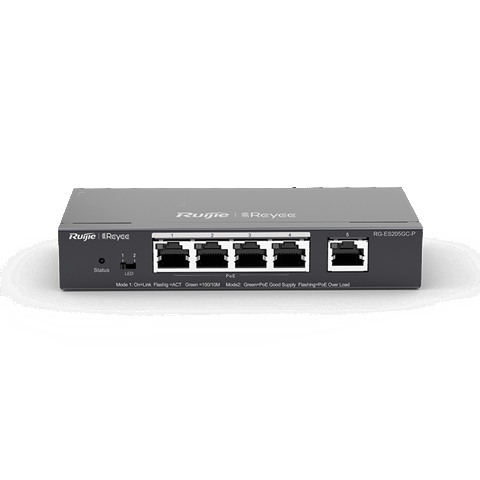 Reyee smart switch poe gigabit 5 p., 4 p. poe/poe+, poe power budget 54w (chassis metallico desktop)