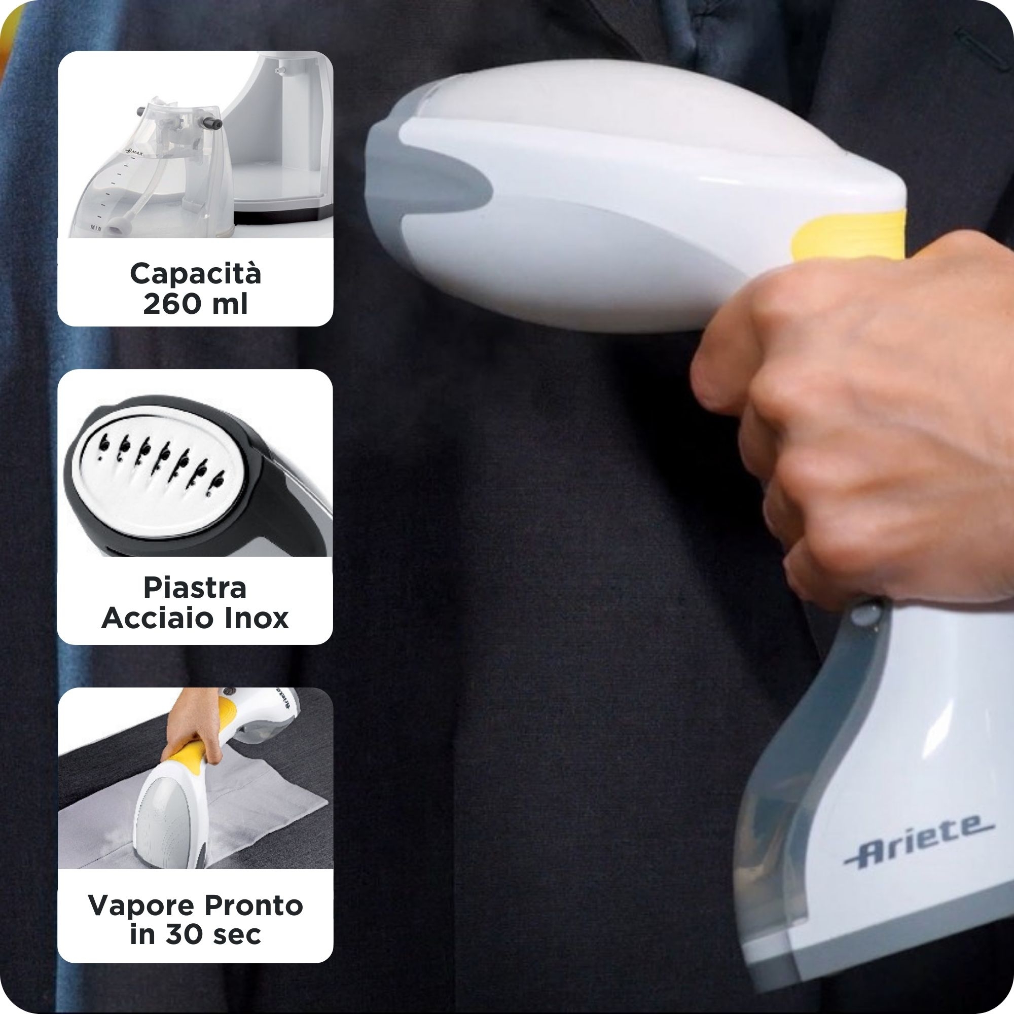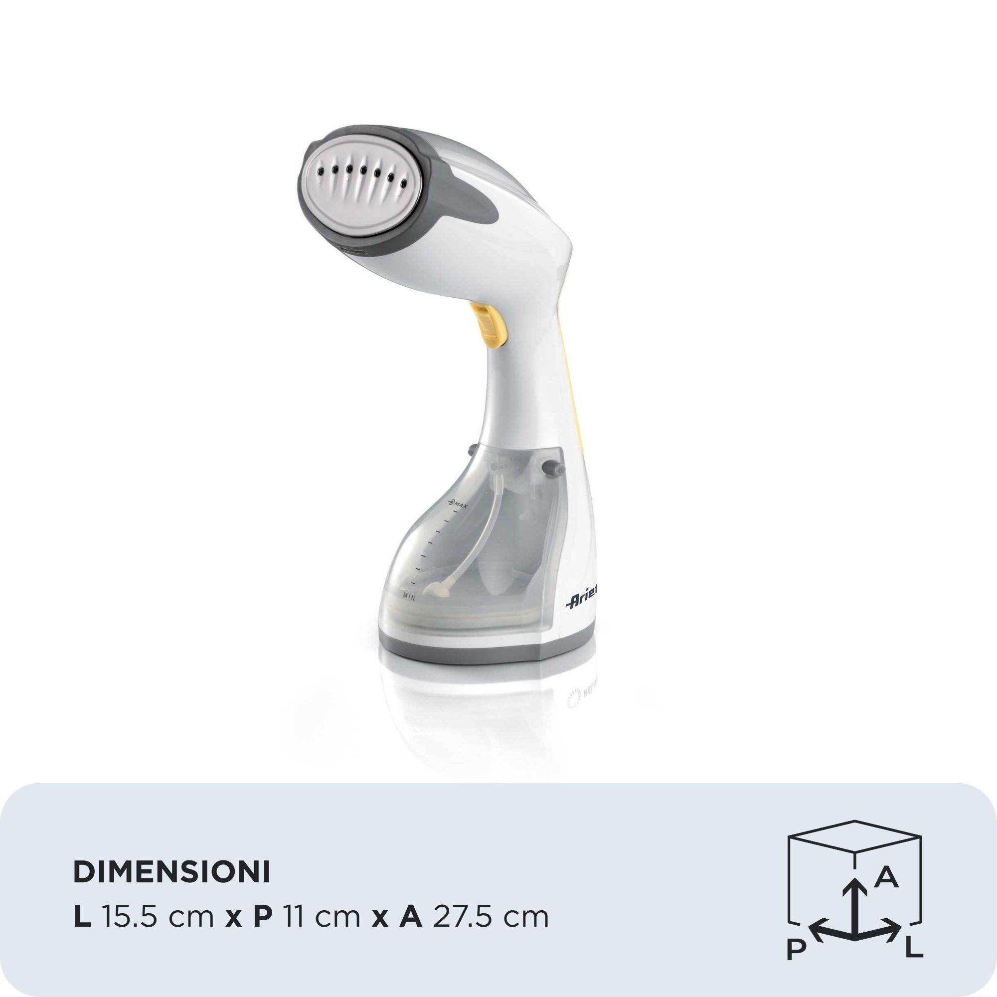 Rivoluziona il tuo modo di stirare! Con la stiratrice verticale di Ariete avere un guardaroba sempre perfetto diventa un gioco da ragazzi. Pronta in pochi istanti, leggera e maneggevole ti permette di stirare e igienizzare comodamente i capi appesi senza lutilizzo dellasse da stiro, oppure di effettuare veloci ritocchi su giacche, camicie e cappotti. La piastra in acciaio inox è delicata e efficace sui tessuti, rendendoli morbidi e distesi in poche passate. Puoi utilizzare il ferro verticale per rinfrescare i tendaggi o i grembiuli di tuo figlio, ma anche per igienizzare cuscini e divani in camera e in salotto se hai in casa amici a 4 zampe. Lo stiratore verticale a vapore è talmente comodo e leggero che puoi metterlo in valigia e portarlo sempre con te anche in viaggio per lavoro o in vacanza: si trasforma nel tuo ferro da stiro da viaggio perfetto! La stiratrice verticale ti consentirà di stirare camicie e tanto altro agilmente e senza alcuna fatica ed è corredata di spazzola con setole e spazzola pelucchi da utilizzare in base ai tessuti da stirare o rinfrescare.Ferro a vapore verticale è sicuro: dopo 8 minuti di inattività, si spegne automaticamente.