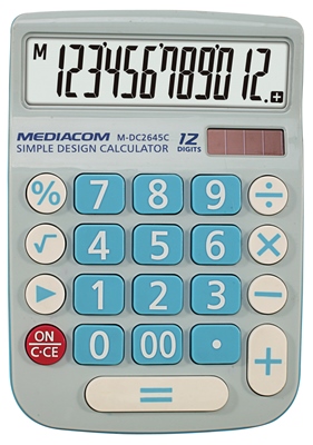 Calcolatrice elettronica a 12 cifre big size - tasto percentuale "%" - tasto totale generale "gt" - tasto tax - vari colori