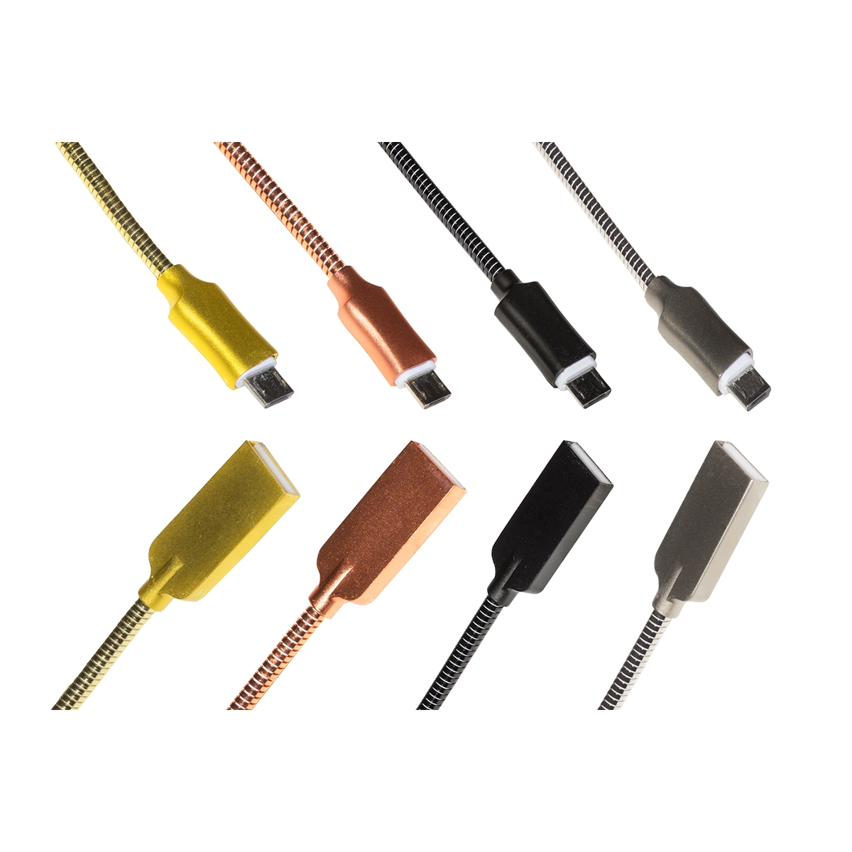 Kit 4 cavi micro usb mt 1 guaina zinco alluminio fino a 2 ampere connettore schermato colori oro, nero, rosa, argento