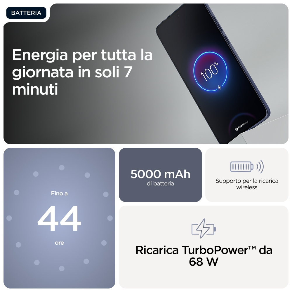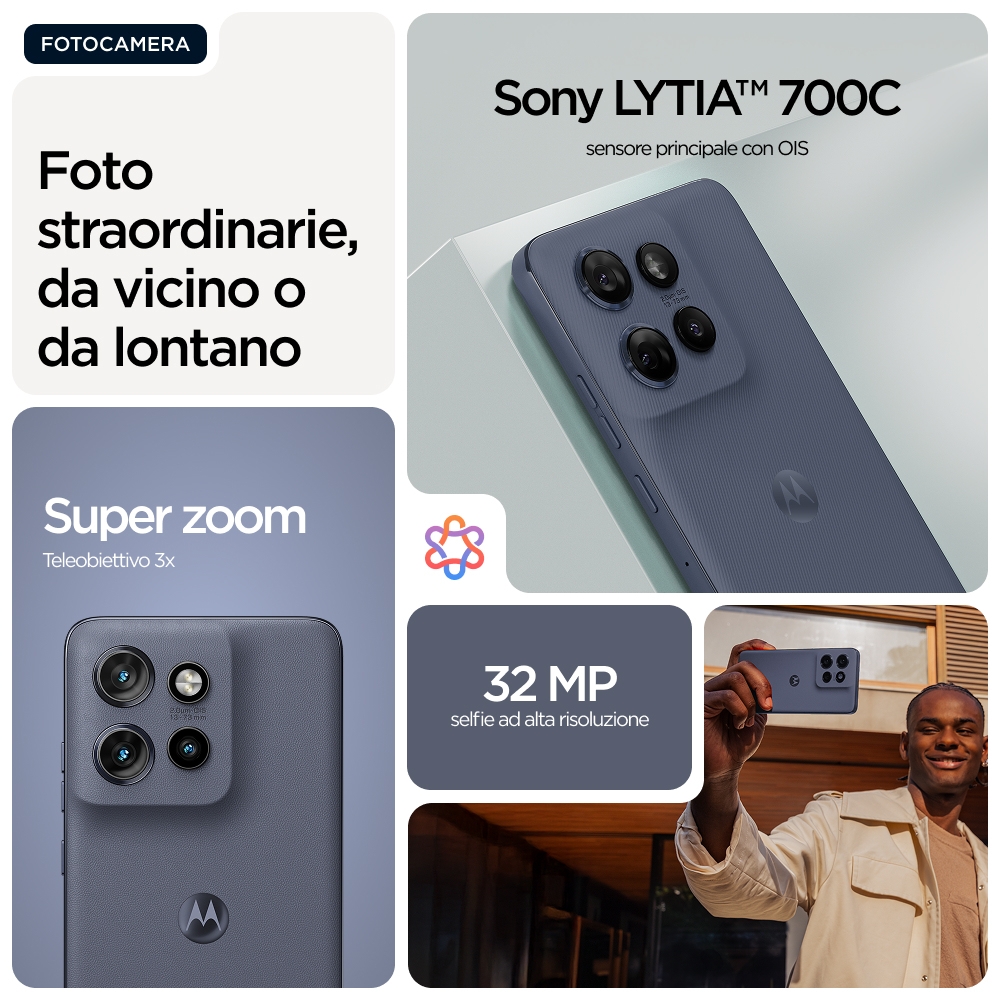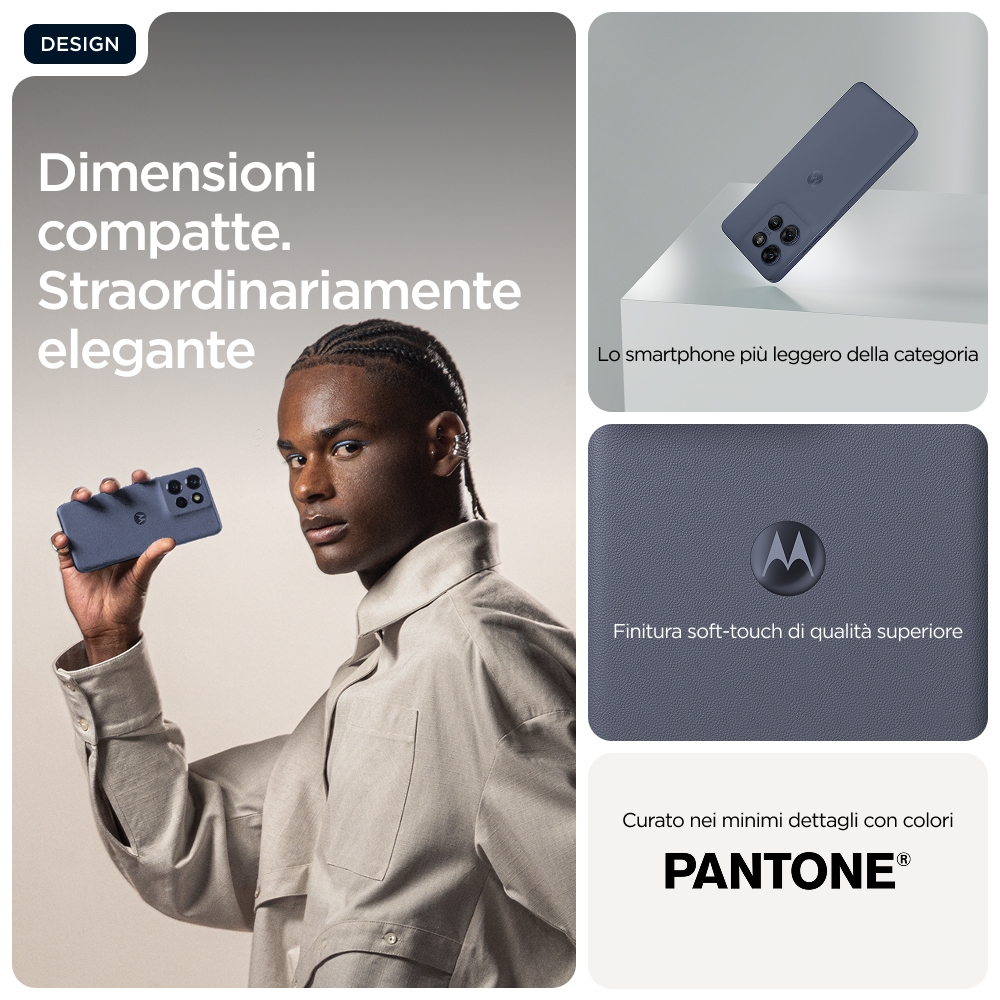 Whats your edge?<br>Ti presentiamo Motorola Edge 60 Neo, uno smartphone pensato per adattarsi alle tue tasche e al tuo stile di vita. Più compatto e realizzato con cura, è disponibile negli ultimi colori PANTONE™ con finiture soft-touch. Ma non lasciarti ingannare dal design sottile. Include funzionalità avanzate come un sistema di fotocamere Sony LYTIA™ da 50 MP potenziato da Moto AI(24), per scattare foto mozzafiato in tutta facilità. Basta inquadrare e fare clic. E quando vuoi salvare qualcosa per dopo, la funzionalità Ricordati di Moto AI(24) scatta, organizza e trova facilmente screenshot, foto e note. in un secondo. Zero preoccupazioni con la batteria che dura tutto il giorno(5), la protezione subacquea e la resistenza alle cadute(2,3). Senza dimenticare lo schermo da 6,36" più luminoso della categoria(7), che ti consente di vedere tutto con chiarezza. Insegui le tue passioni con il nuovo Motorola Edge 60 Neo compatto.