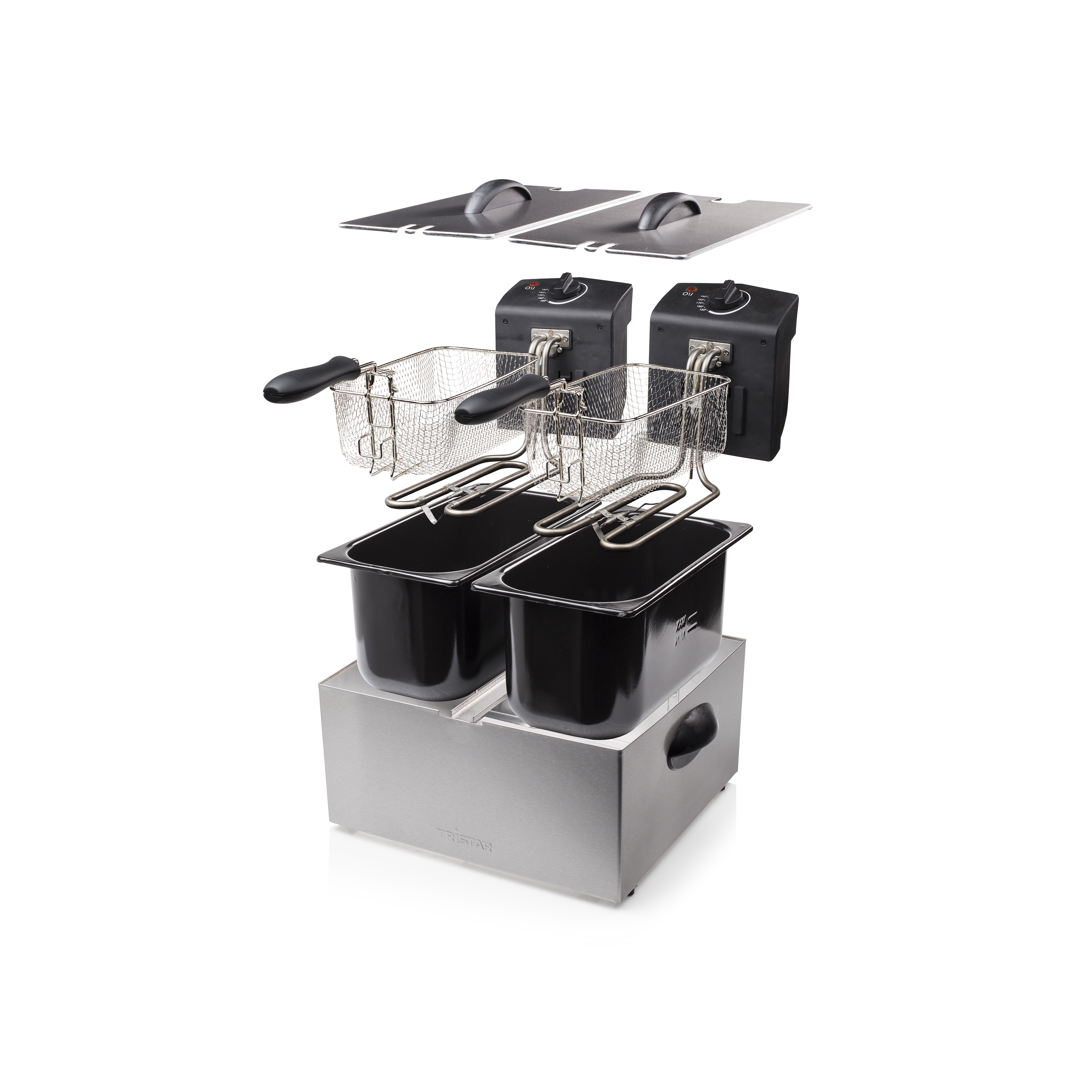 Tristar FR-6937 Friggitrice Doppia, Friggitrice, 6 L, 190 °C, Doppia, Nero, Acciaio inox, Manopola