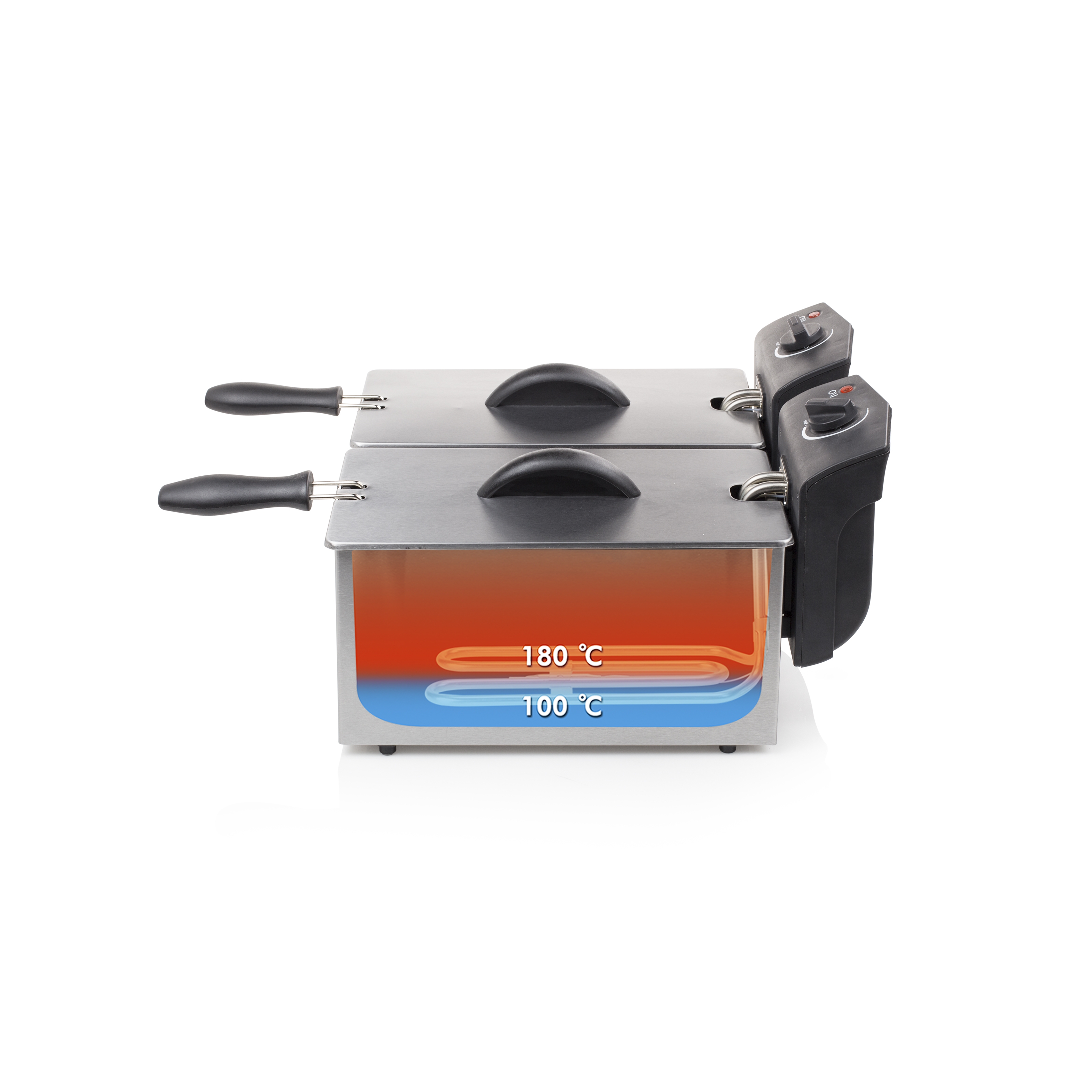 Friggitrice FR-6937 – Capacità 2 x 3 litri – Entrambi recipienti possono essere utilizzati singolarmente