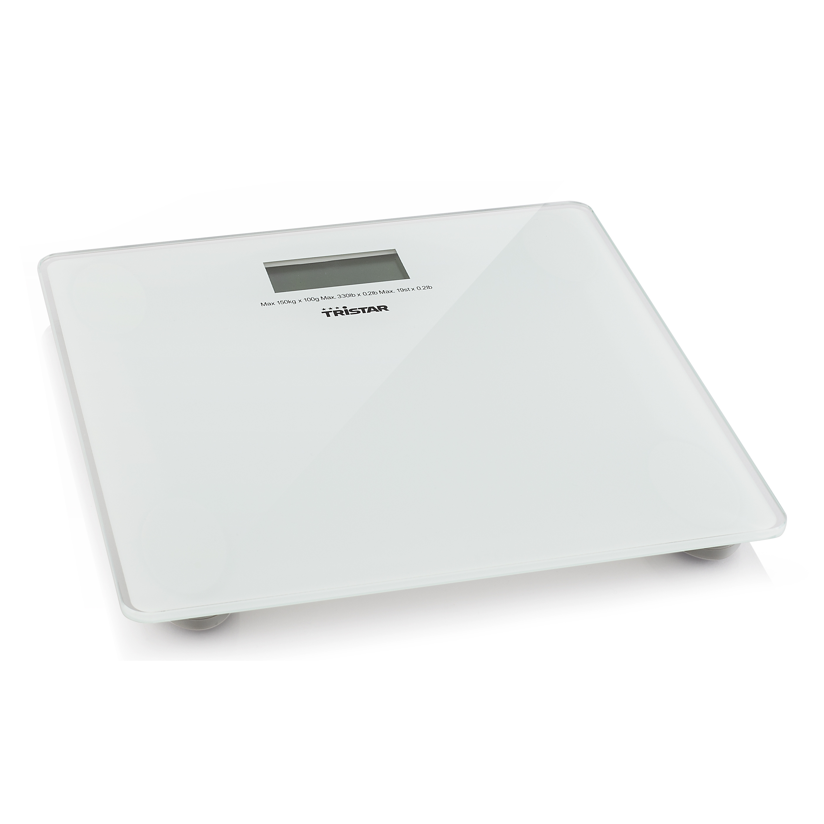 Tristar WG-2419 Bilancia pesapersone, Bilancia pesapersone elettronica, 150 kg, 100 g, Trasparente, Bianco, kg, lb, ST, Quadrato