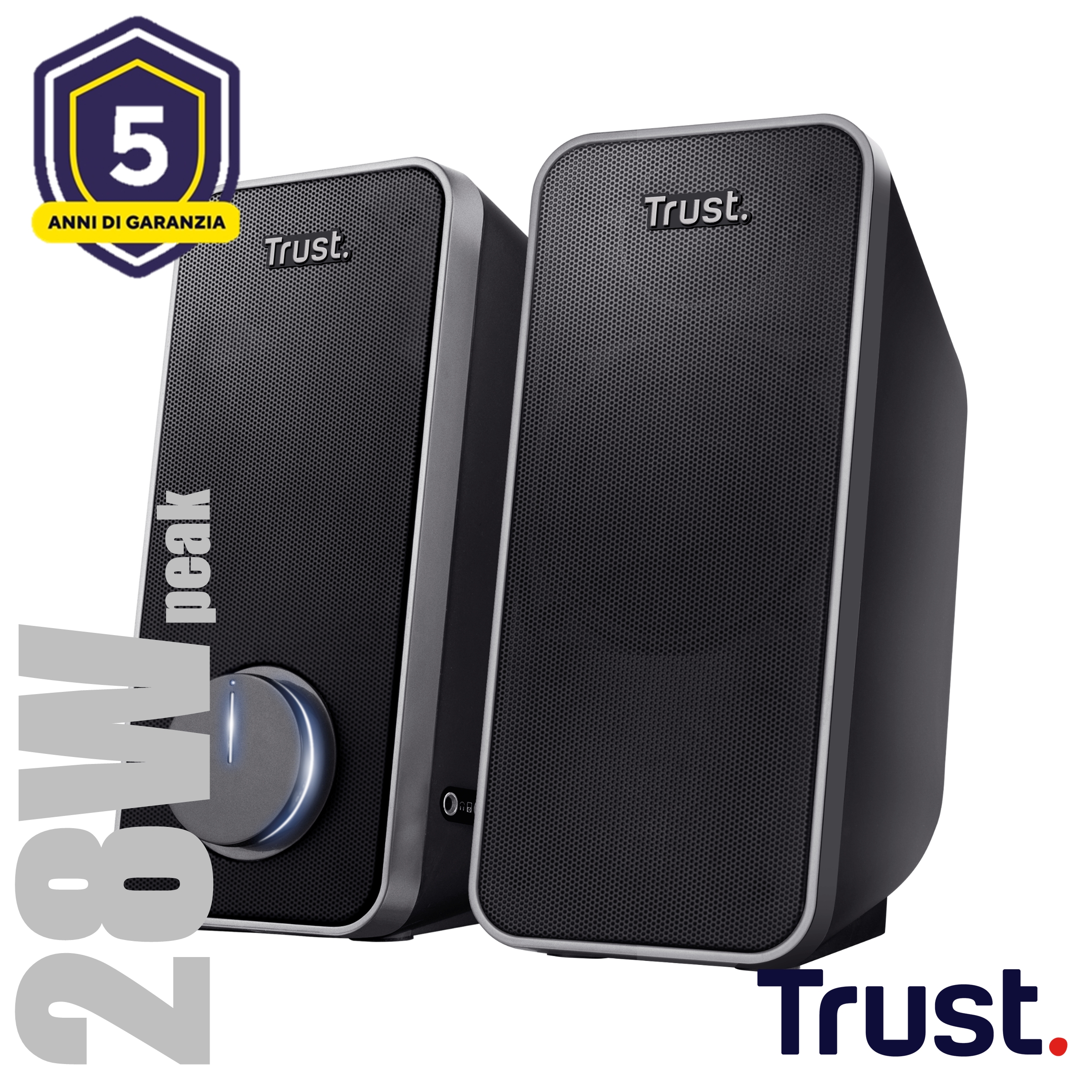 Suono di alta qualità<br>Con una potenza massima di 28W, Trust Arys produce un suono ricco e pieno di bassi. Il set di altoparlanti è perfetto per ascoltare musica, guardare video e giocare.<br><br>Facile da usare<br>Trust Arys è alimentato via USB; linstallazione degli altoparlanti è quindi molto facile. Per far funzionare il set di altoparlanti, collega semplicemente lUSB al tuo computer!<br><br>Design confortevole<br>La griglia metallica è appositamente concepita per fornire una protezione supplementare. Grazie alle sue dimensioni compatte, gli altoparlanti possono essere comodamente posizionati sulla tua scrivania. Consente anche di risparmiare spazio a casa o in ufficio.